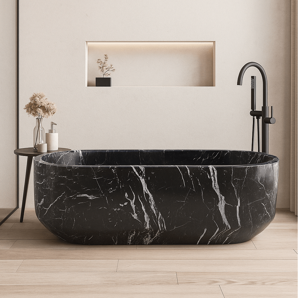 Custom Marble Bathtub - Marblebee Design Nero Marquina black marble tub