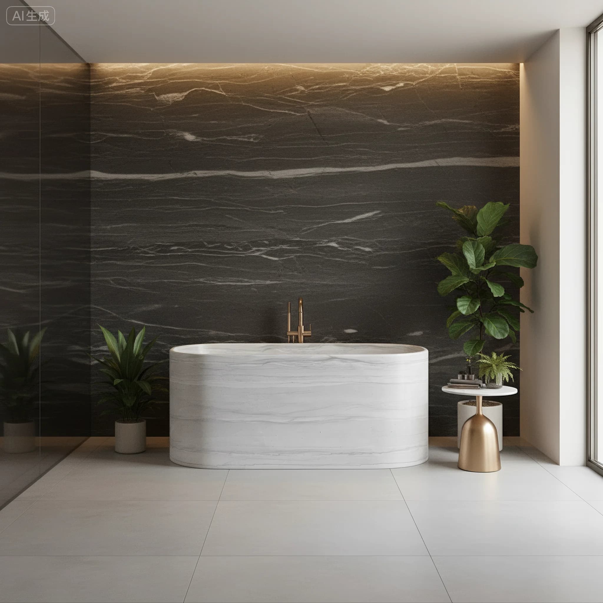 Japanese soaking tub style with built-in seat hand-carved from natural marble