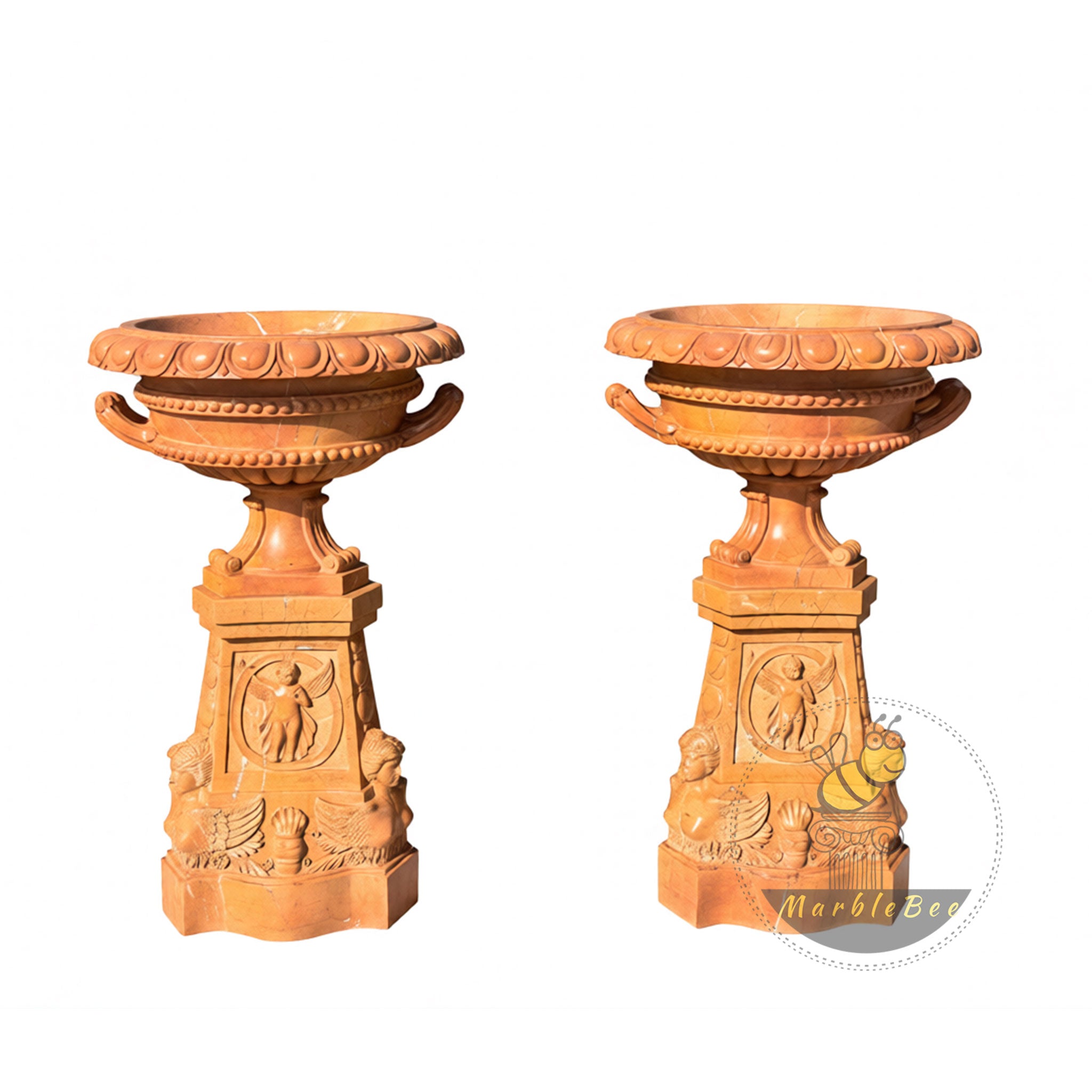 Outdoor planters Yellow Marble Pedestal Urn Pair