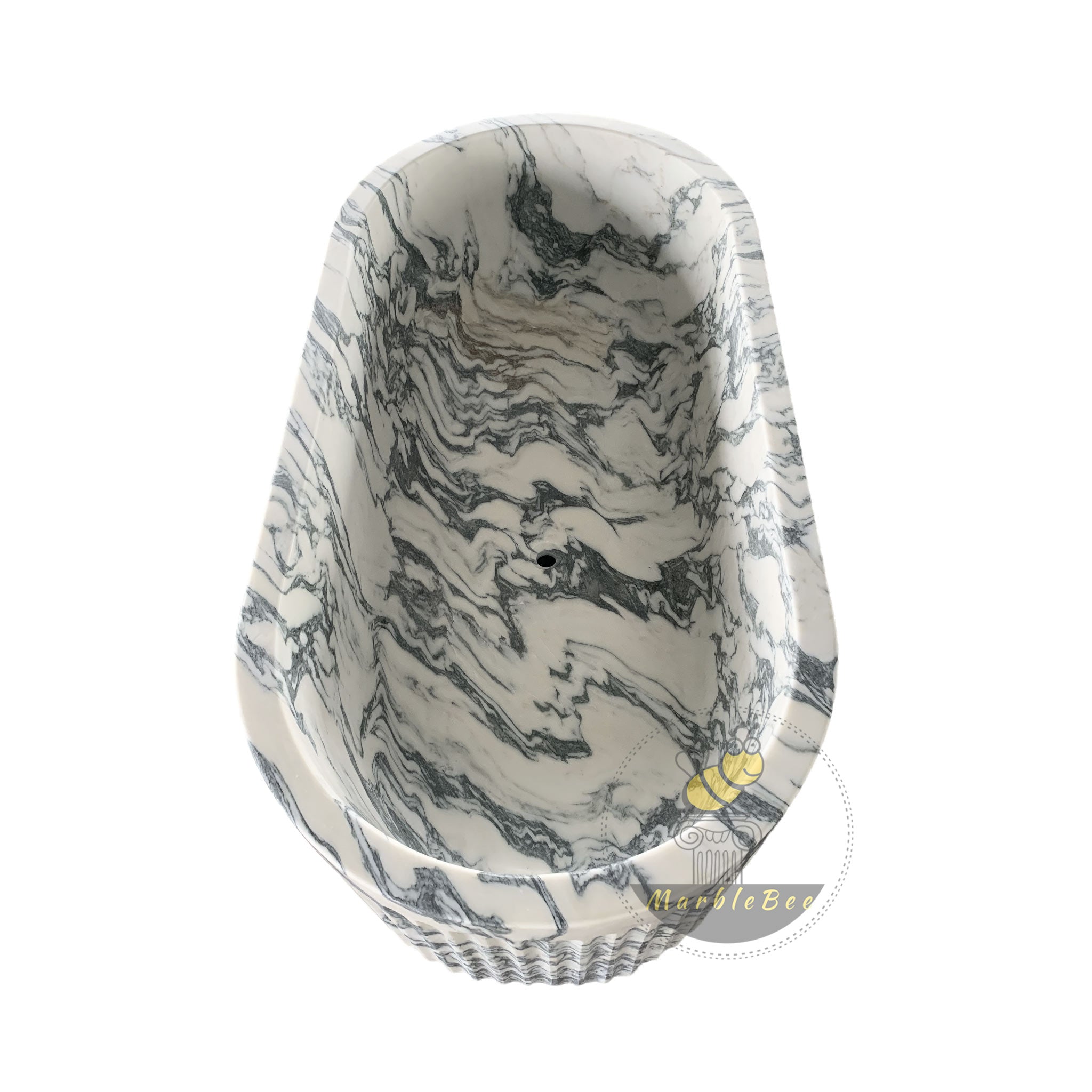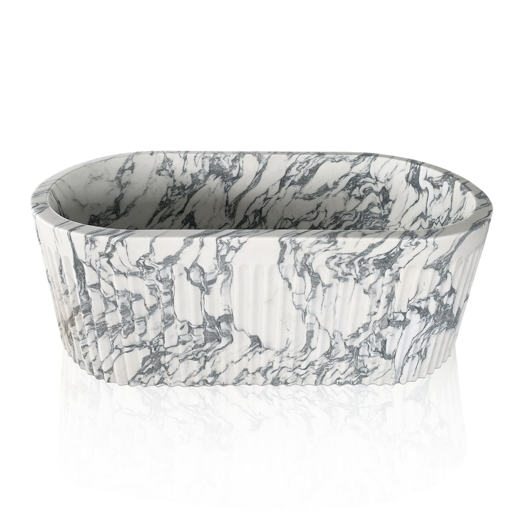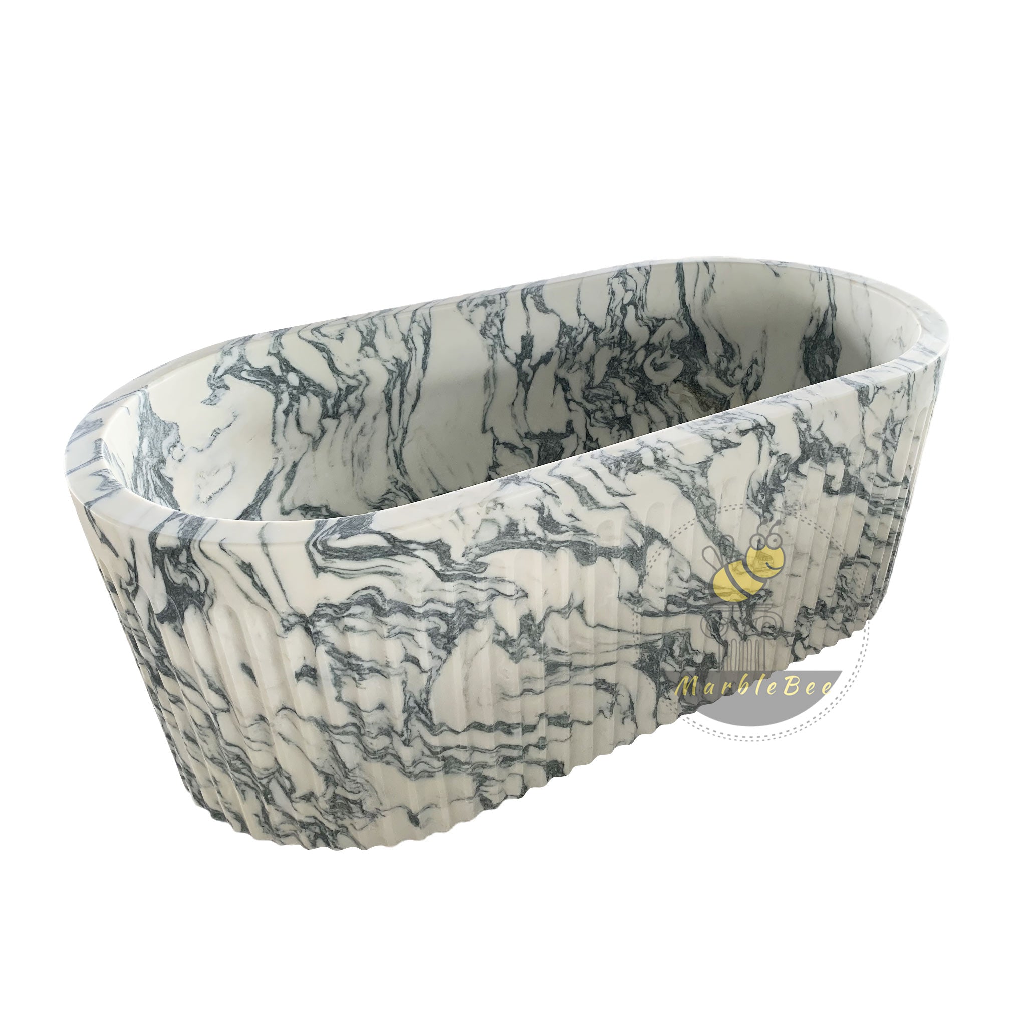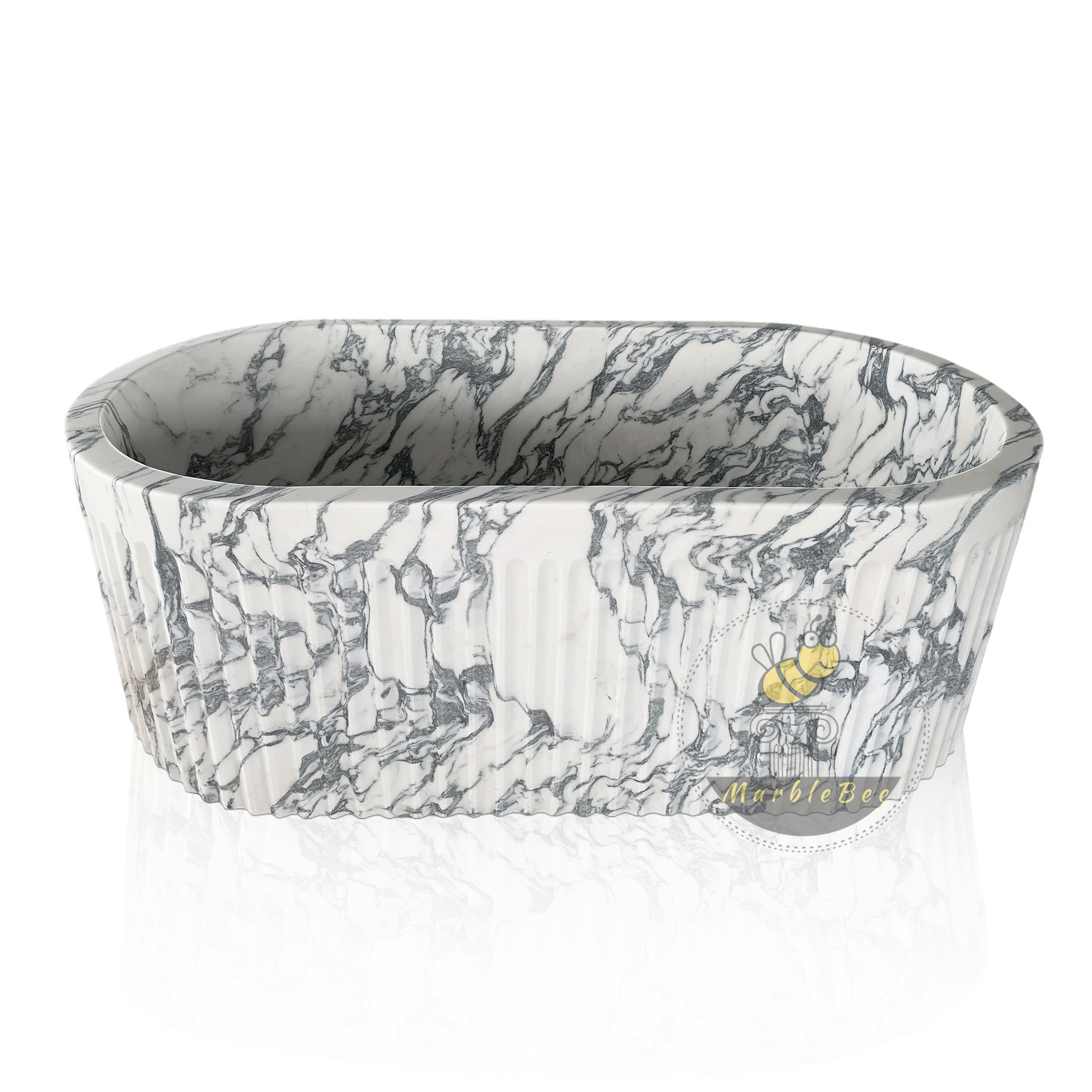 Marble Bath Tubs | Calacatta White Fluted Oval Soaking 70.87" Long