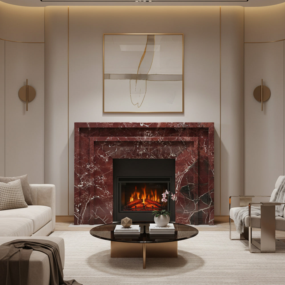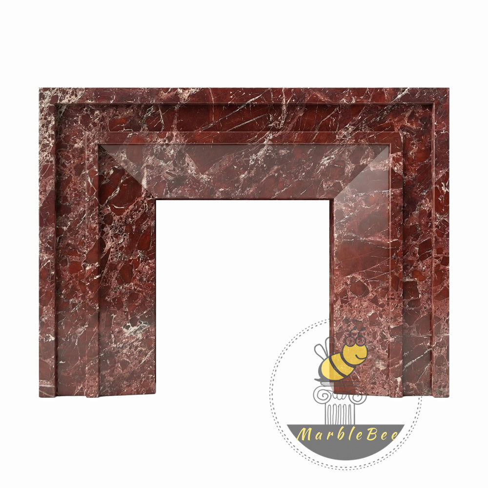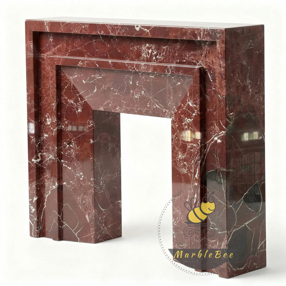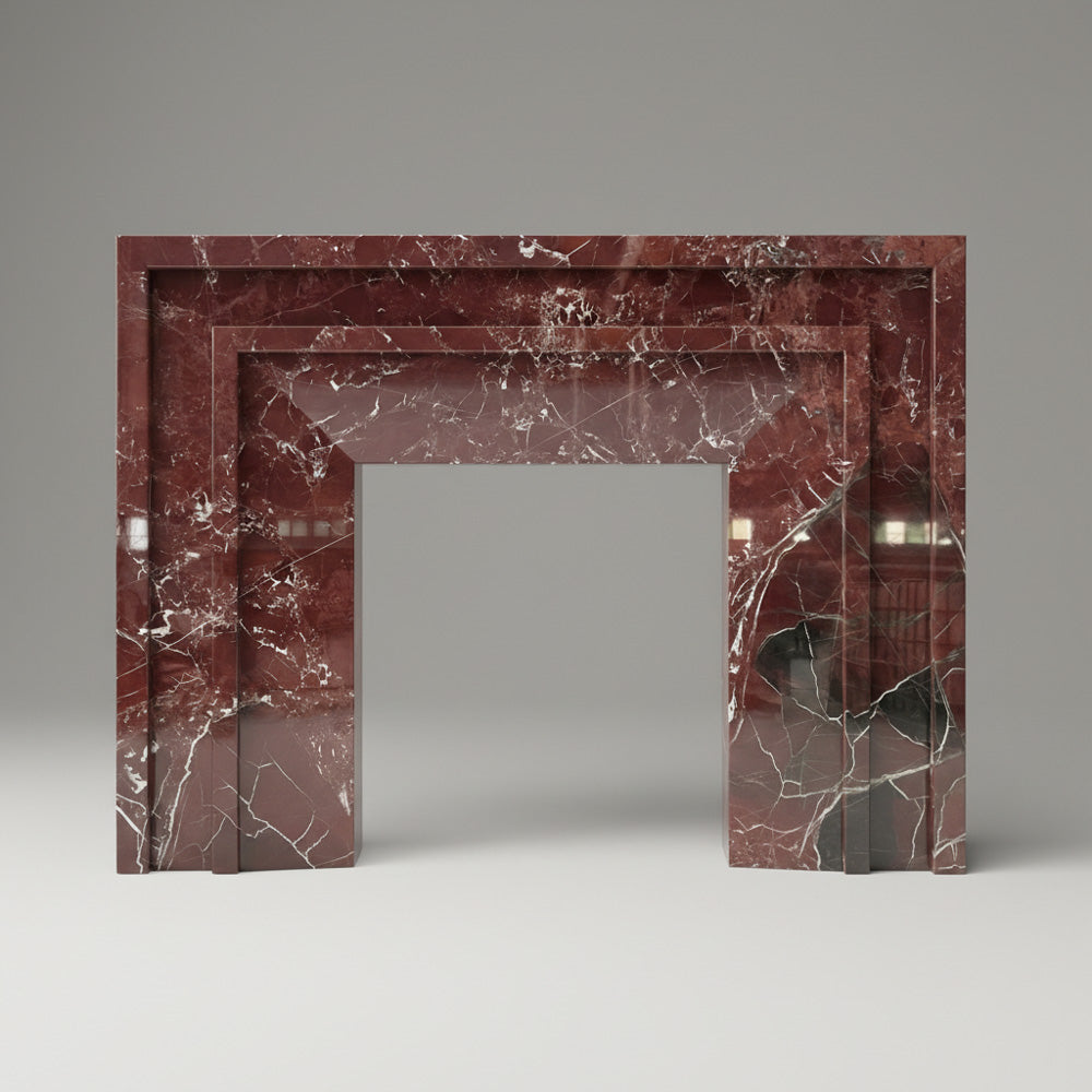 Marble fire place | Stepped Geometric Frame | Width 59" | Rosso Levanto