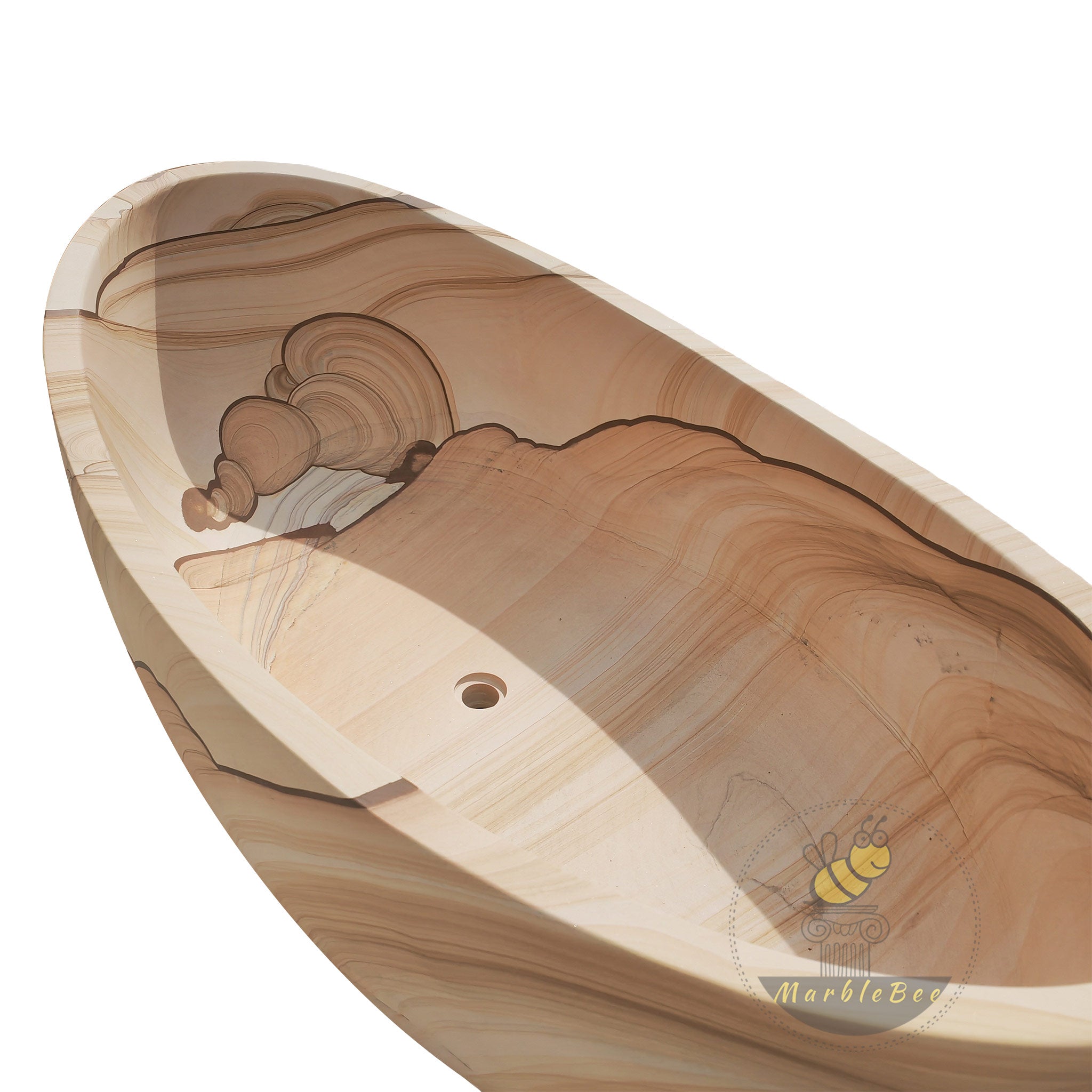Sandstone Bathtub | Wavy Desert Tone Oval Trough 70.87" Long