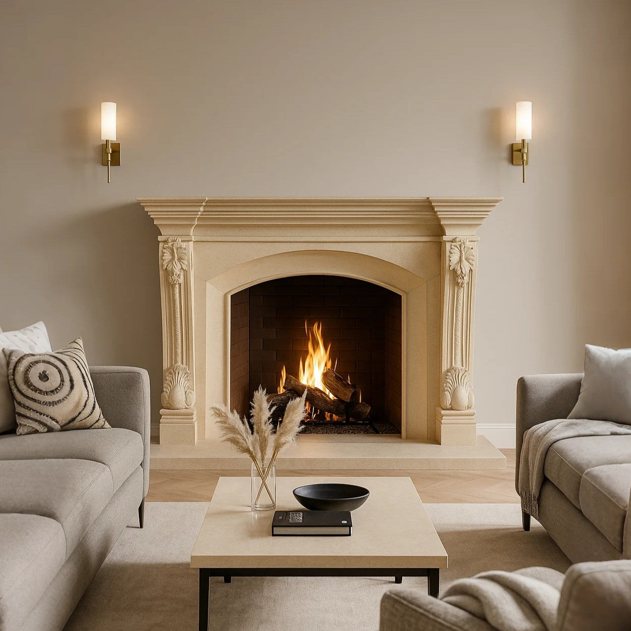 Find timeless beauty with Buy Marble Fireplace Surround, crafted from Egyptian Beige Marble. Its arched design and floral carvings add a regal touch. The sturdy beige frame ensures lasting warmth.