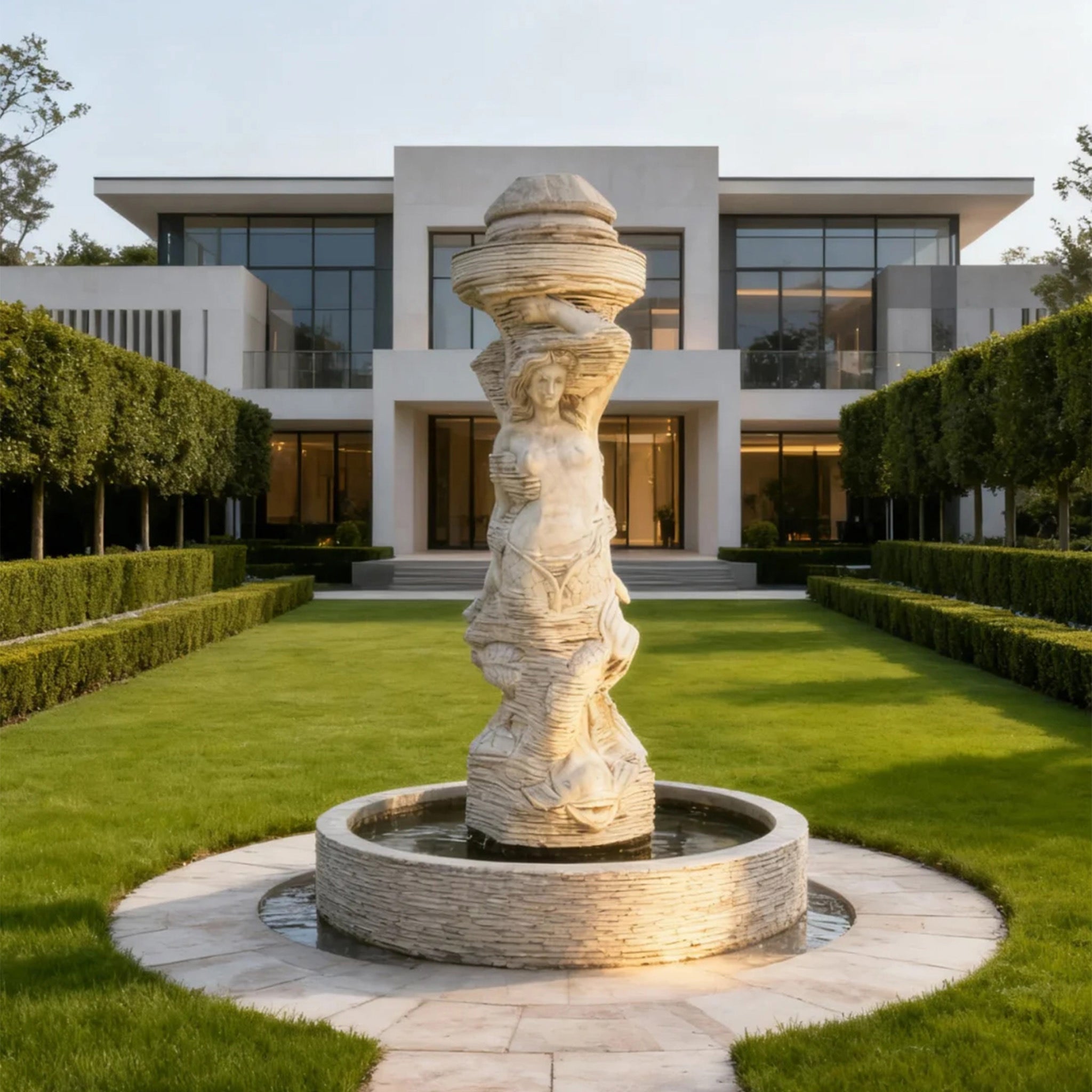 إن حضورها القوي وتصميمها الأنيق يجعلها مثالية للمساحات الخارجية الكبيرة أو الحدائق أو الساحات أو حتى الأماكن التجارية مثل الفنادق والمنتجعات. تتيح لك الطبيعة المتنوعة لهذه النافورة دمجها بسهولة في أي تصميم للمناظر الطبيعية، مما يضيف لمسة من الرقي والفخامة.