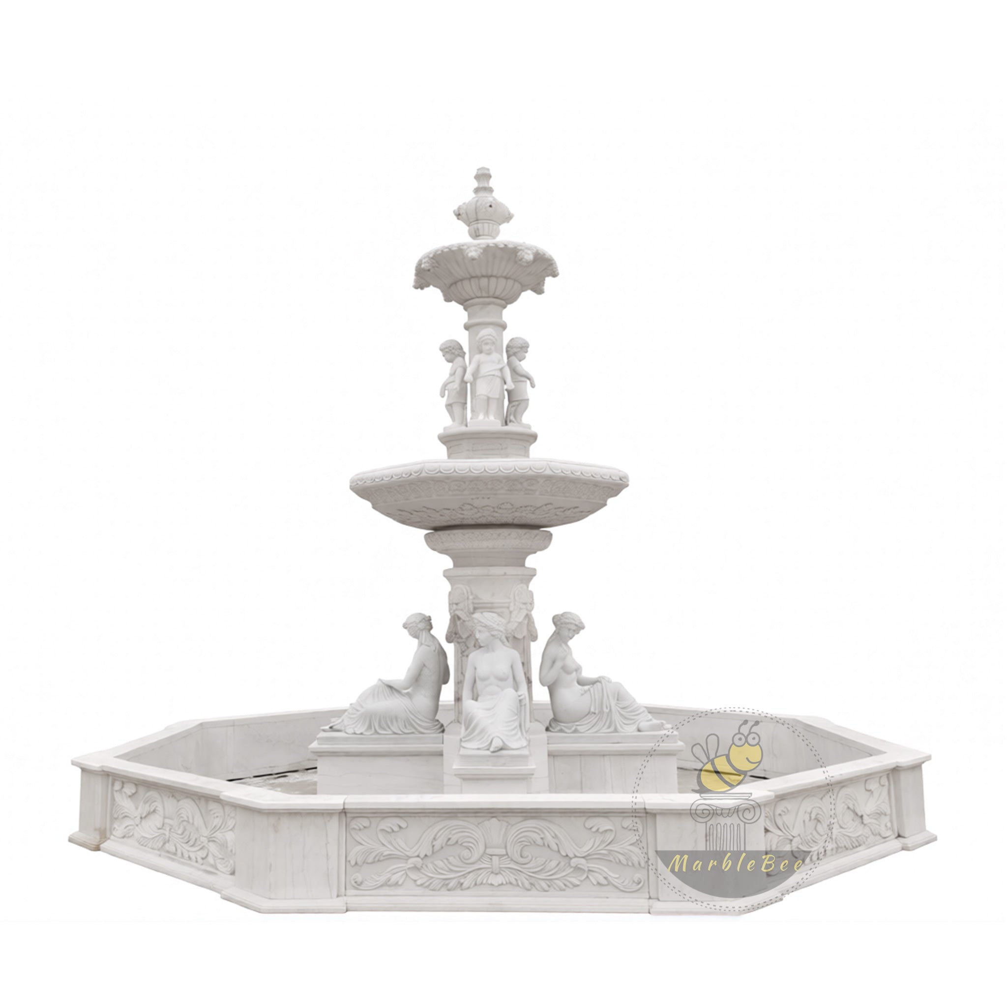 إن حضورها القوي وتصميمها الأنيق يجعلها مثالية للمساحات الخارجية الكبيرة أو الحدائق أو الساحات أو حتى الأماكن التجارية مثل الفنادق والمنتجعات. تتيح لك الطبيعة المتنوعة لهذه النافورة دمجها بسهولة في أي تصميم للمناظر الطبيعية، مما يضيف لمسة من الرقي والفخامة.