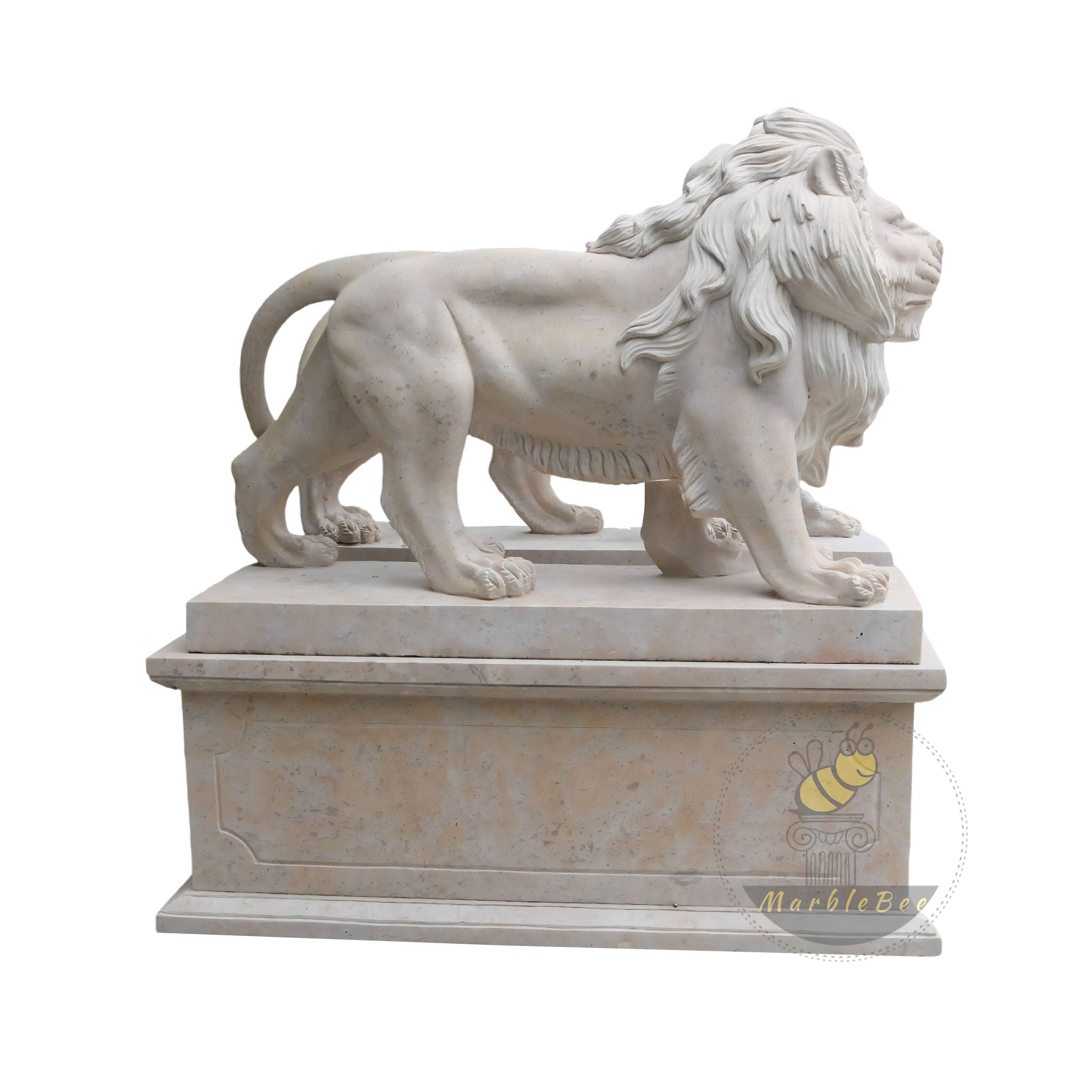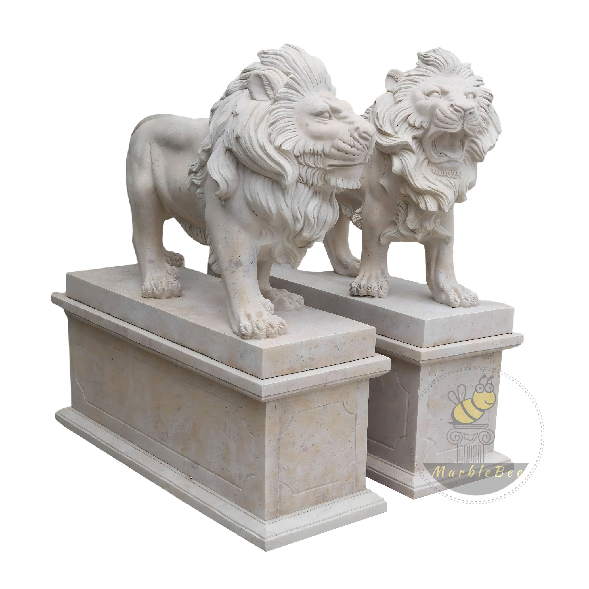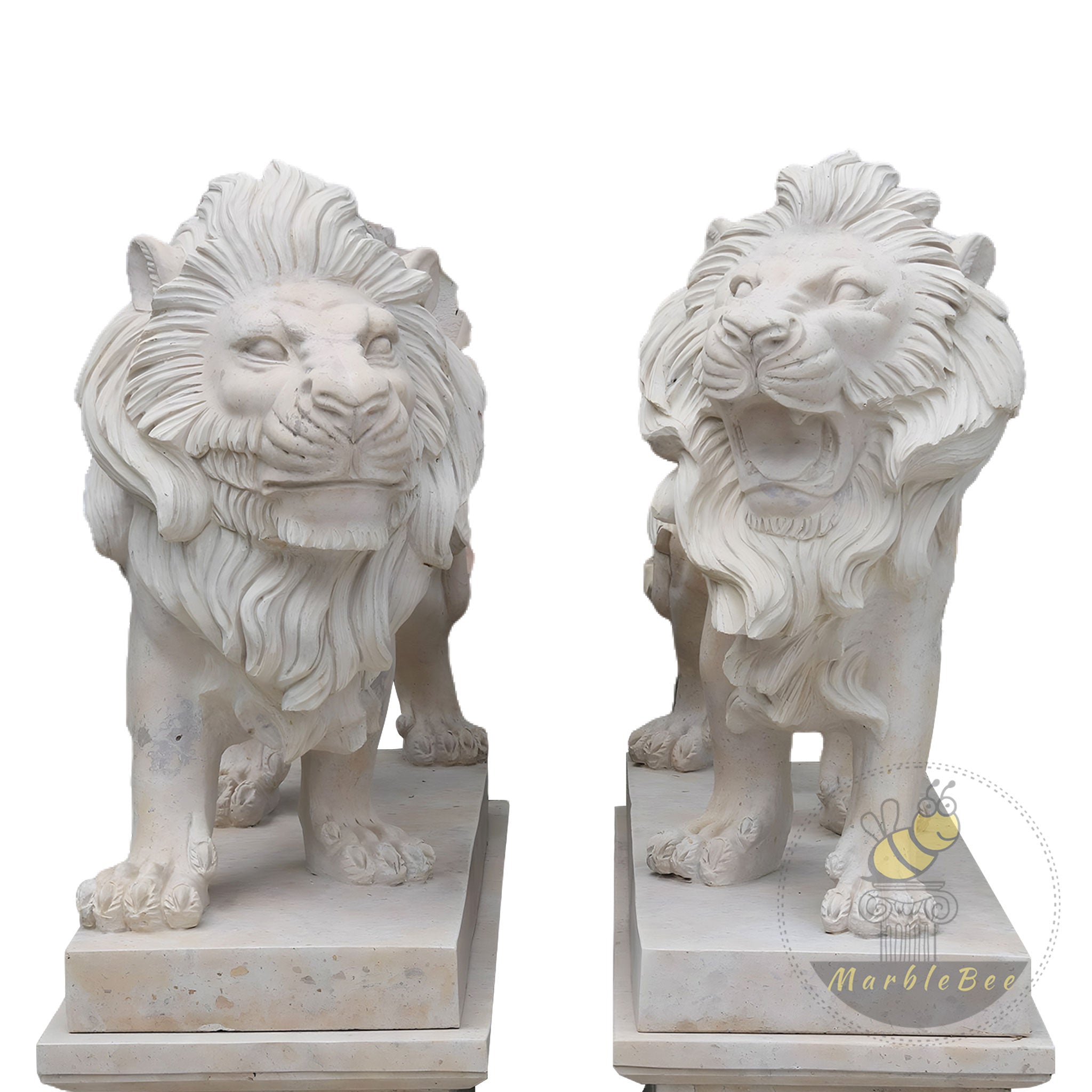 Lion Statues for Sale Classic Beige Limestone Hand-Carved Pair