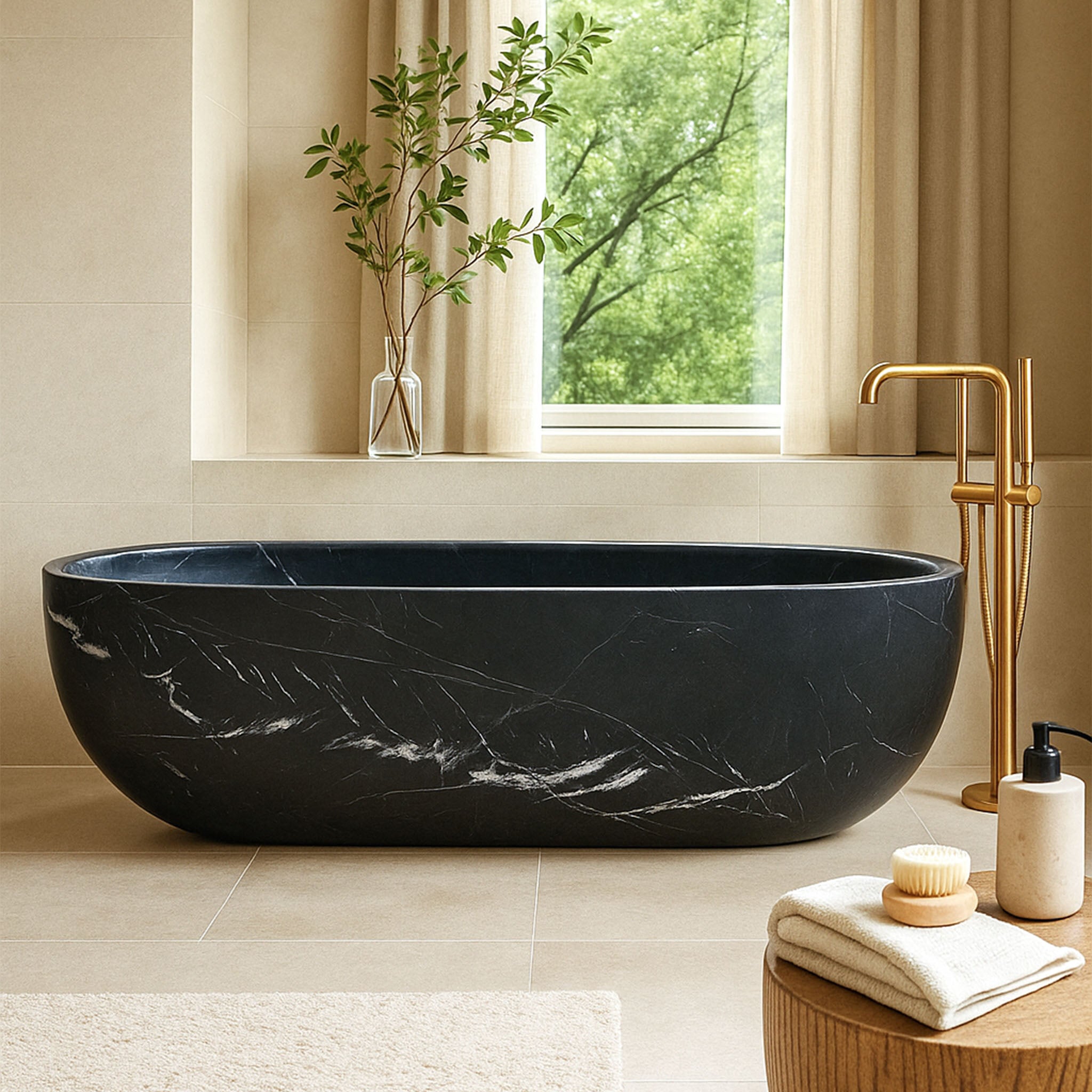 Black marble bathtub MarbleBee Modern Design hand-carved from black Nero Marguia marble