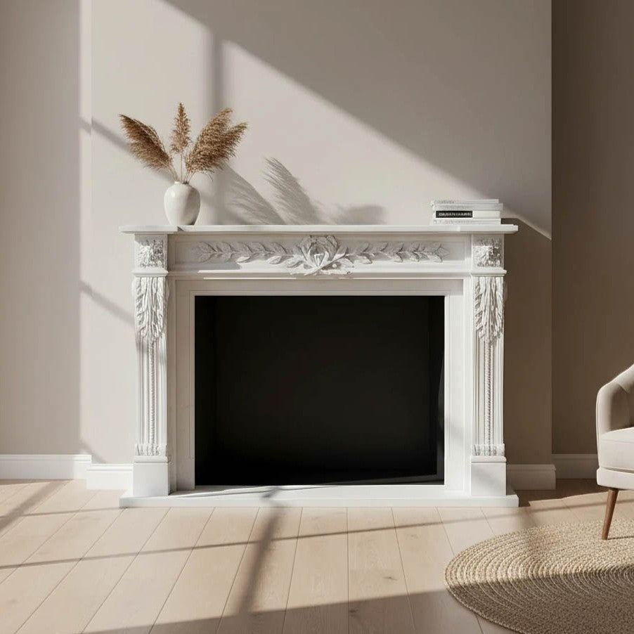 Marble fireplace surround -Louis XVI Style white marble fireplace