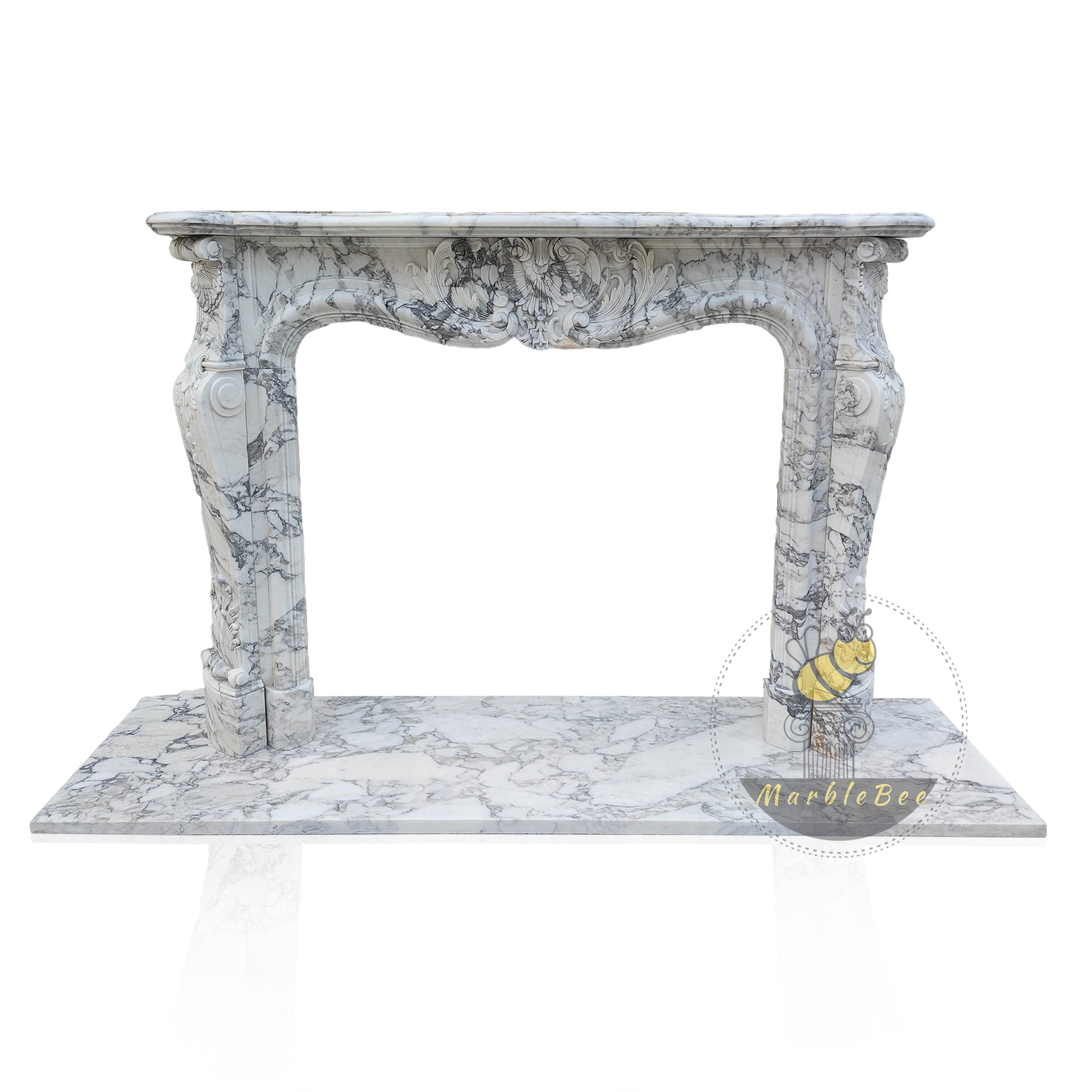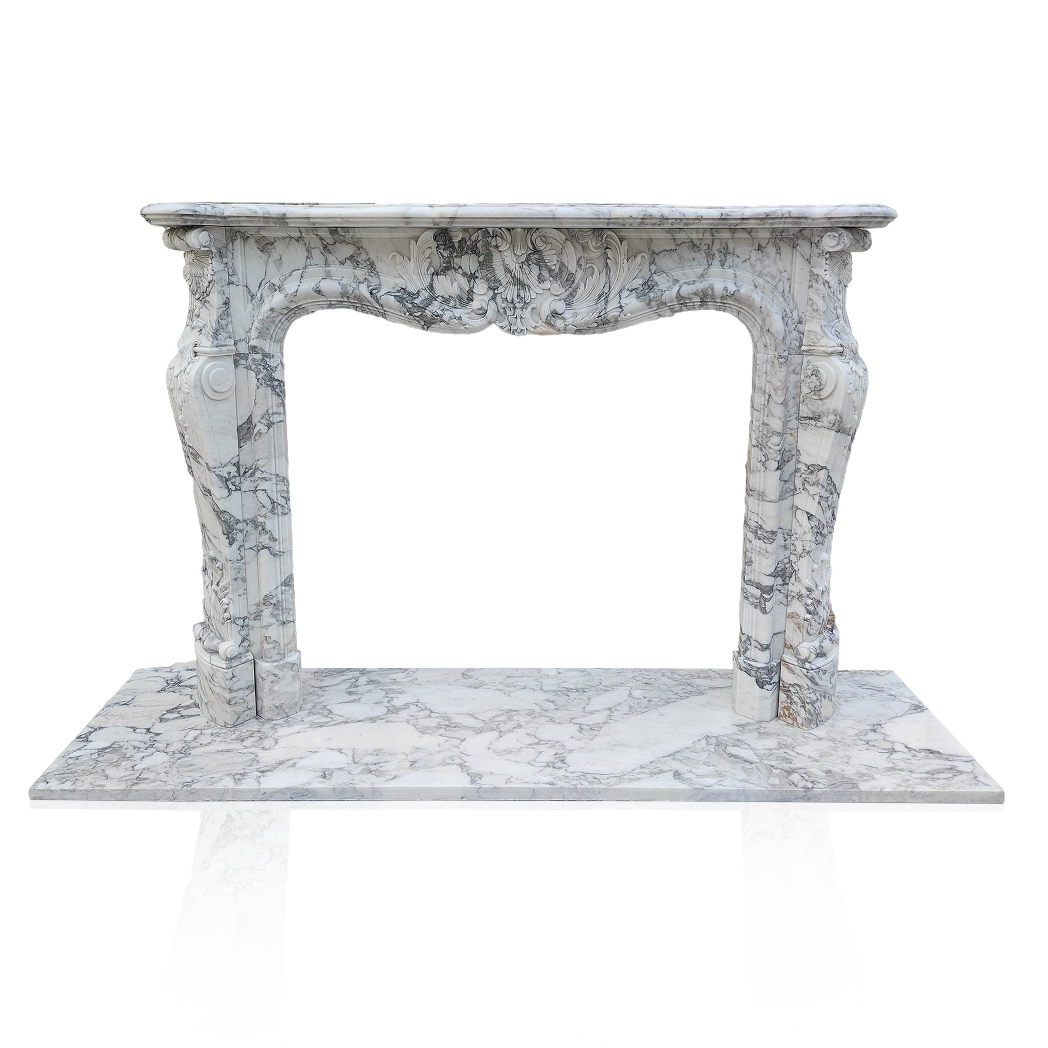 Marble Mantel Hand-Carved Baroque 47" Tall