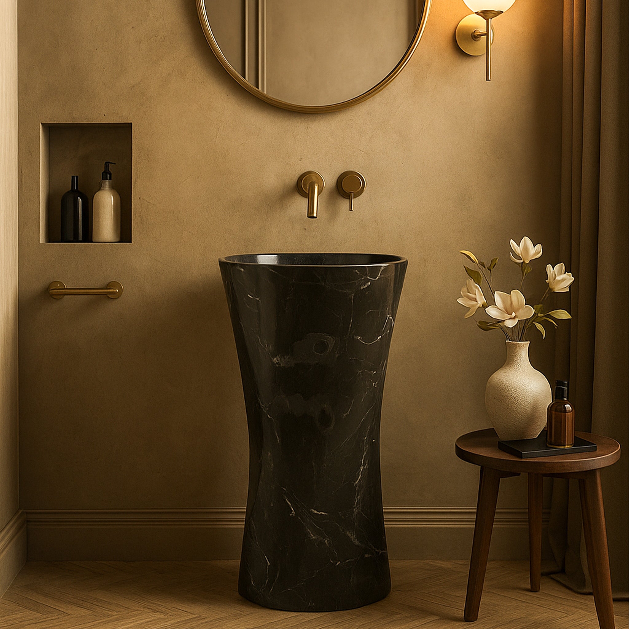 • منحوت يدويًا من الحجر الطبيعي