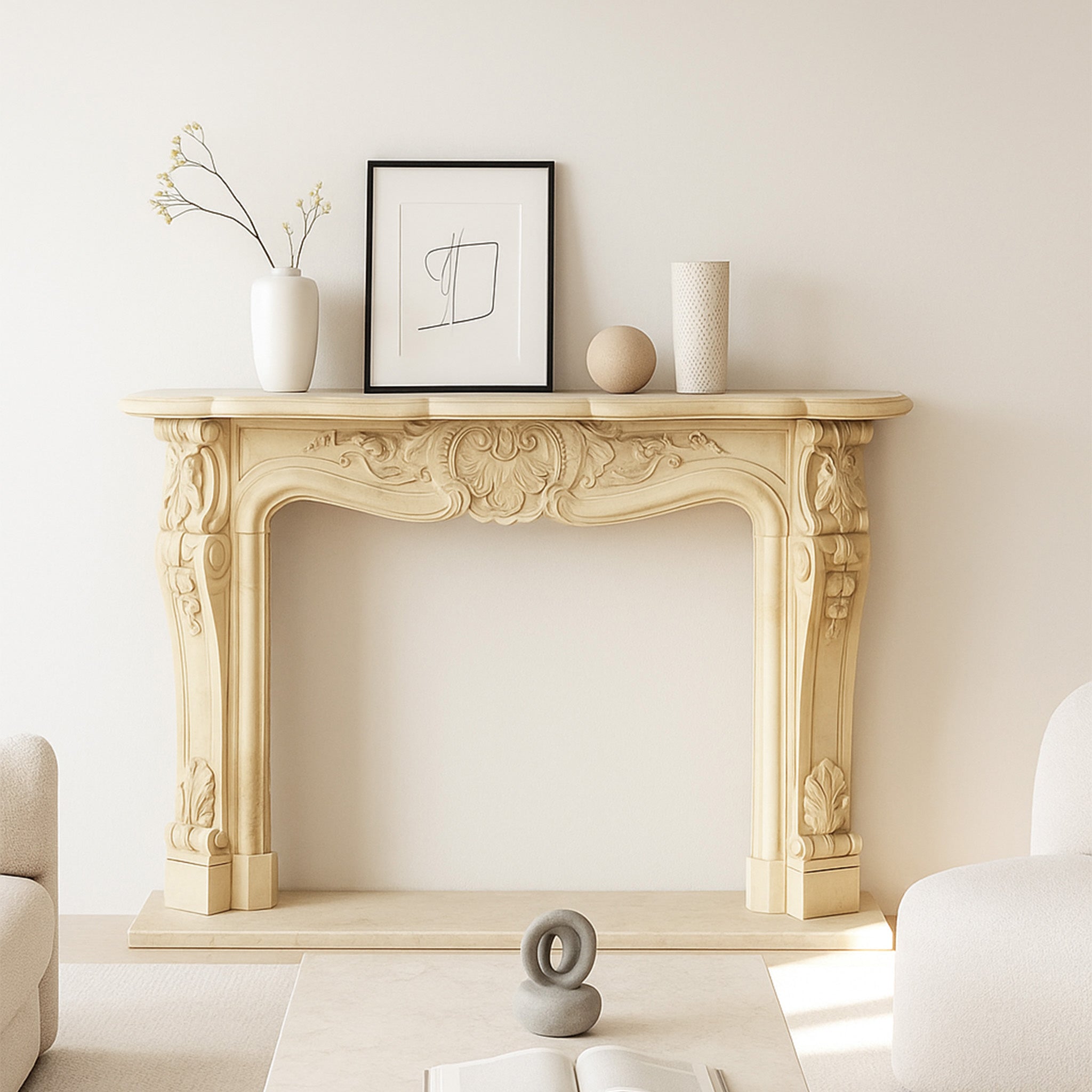 This French Louis XV style fireplace mantel combines classic elegance with modern customization. With a customizable opening size and a variety of marble options to choose from, it’s the perfect addition to any home. Ready for shipping, this mantel brings timeless beauty and functionality to your living space.