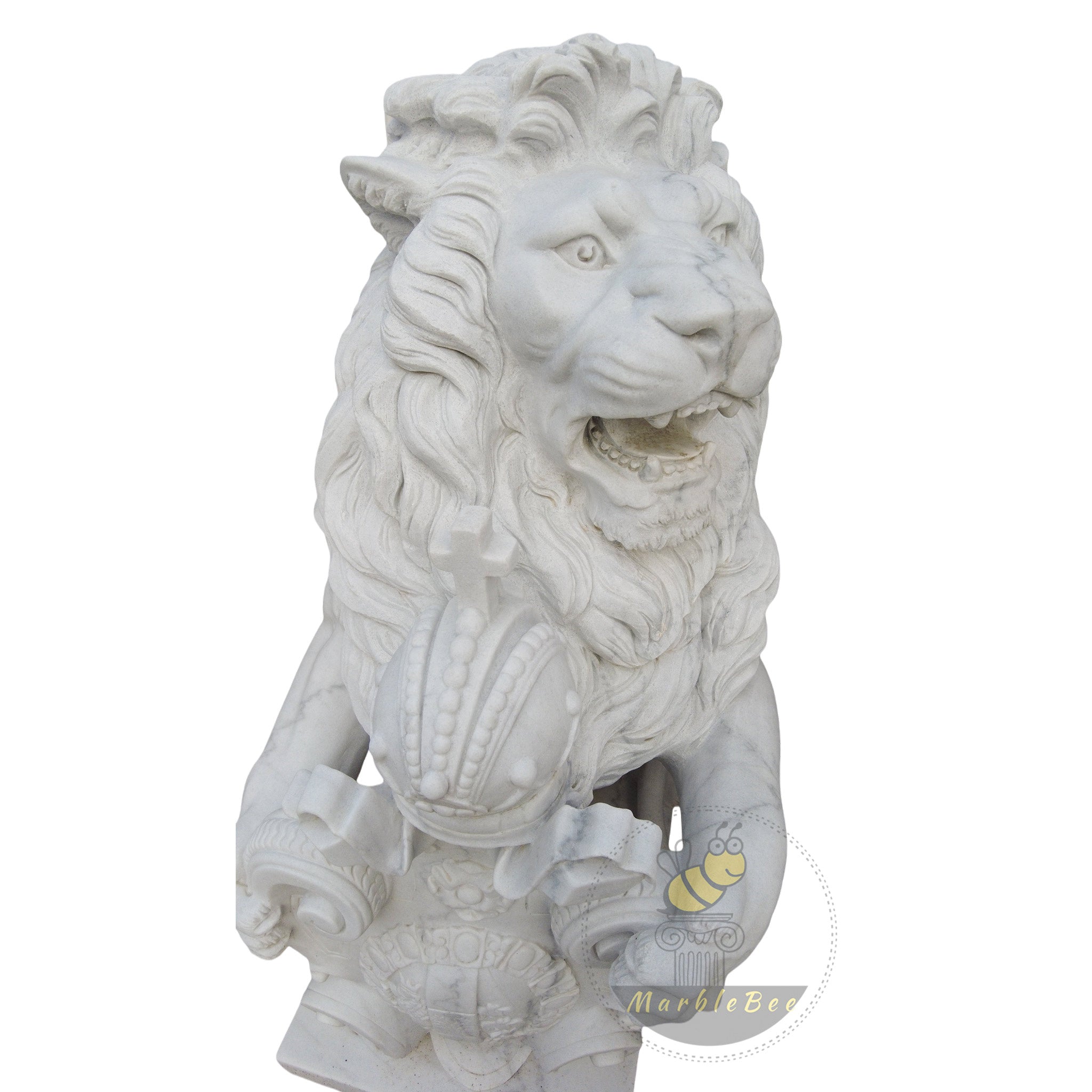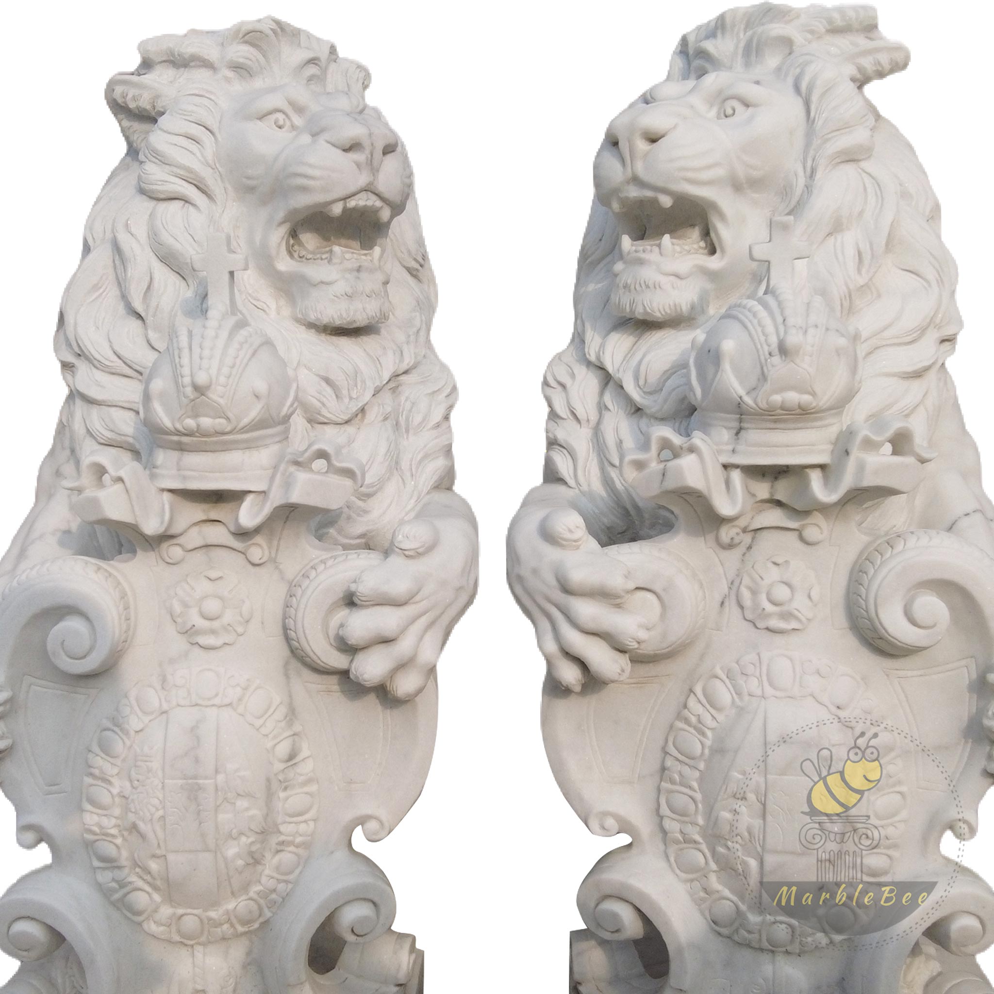 Stone Lion Statue White Marble Heraldic Royal Pair