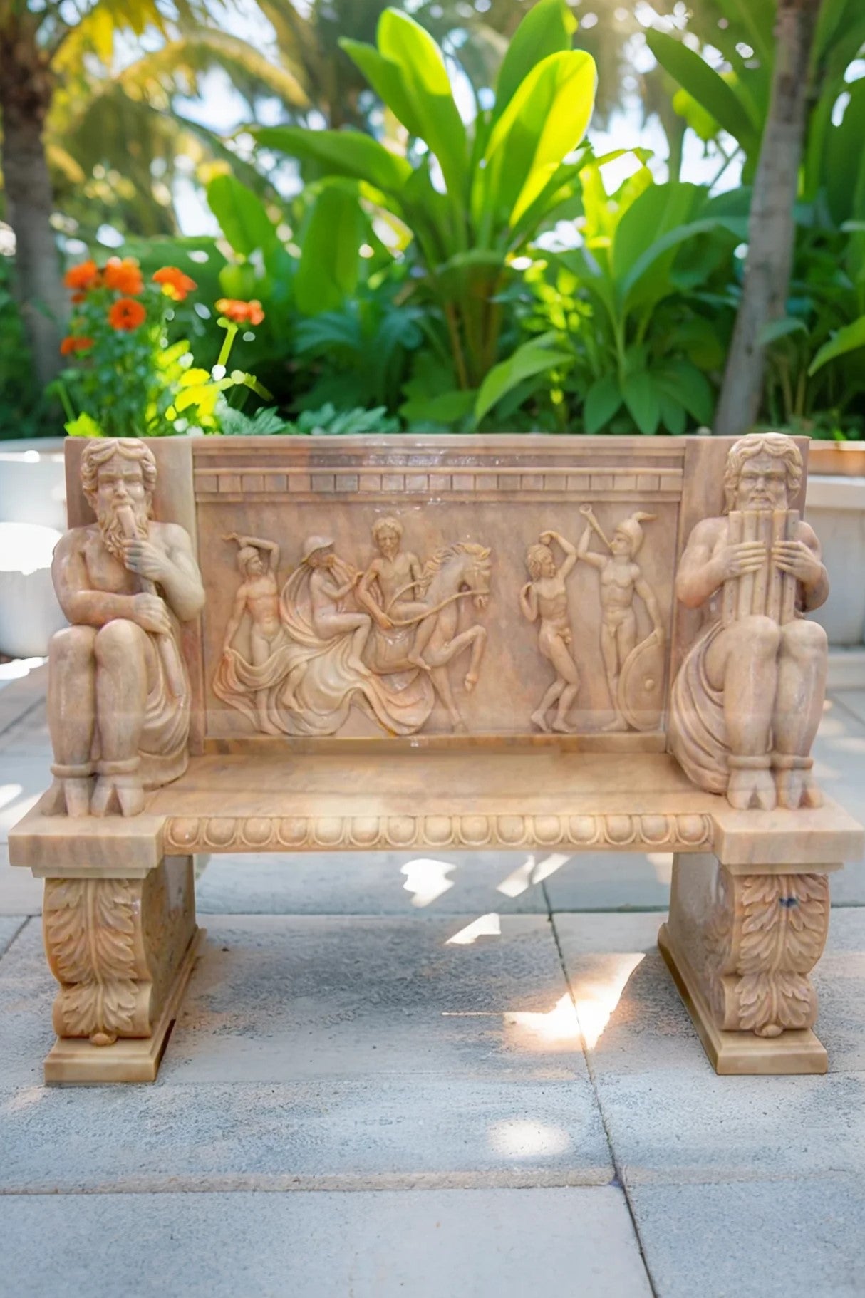 Placing this Stone Bench in your backyard transforms the outdoor space into a sanctuary of beauty and sophistication.