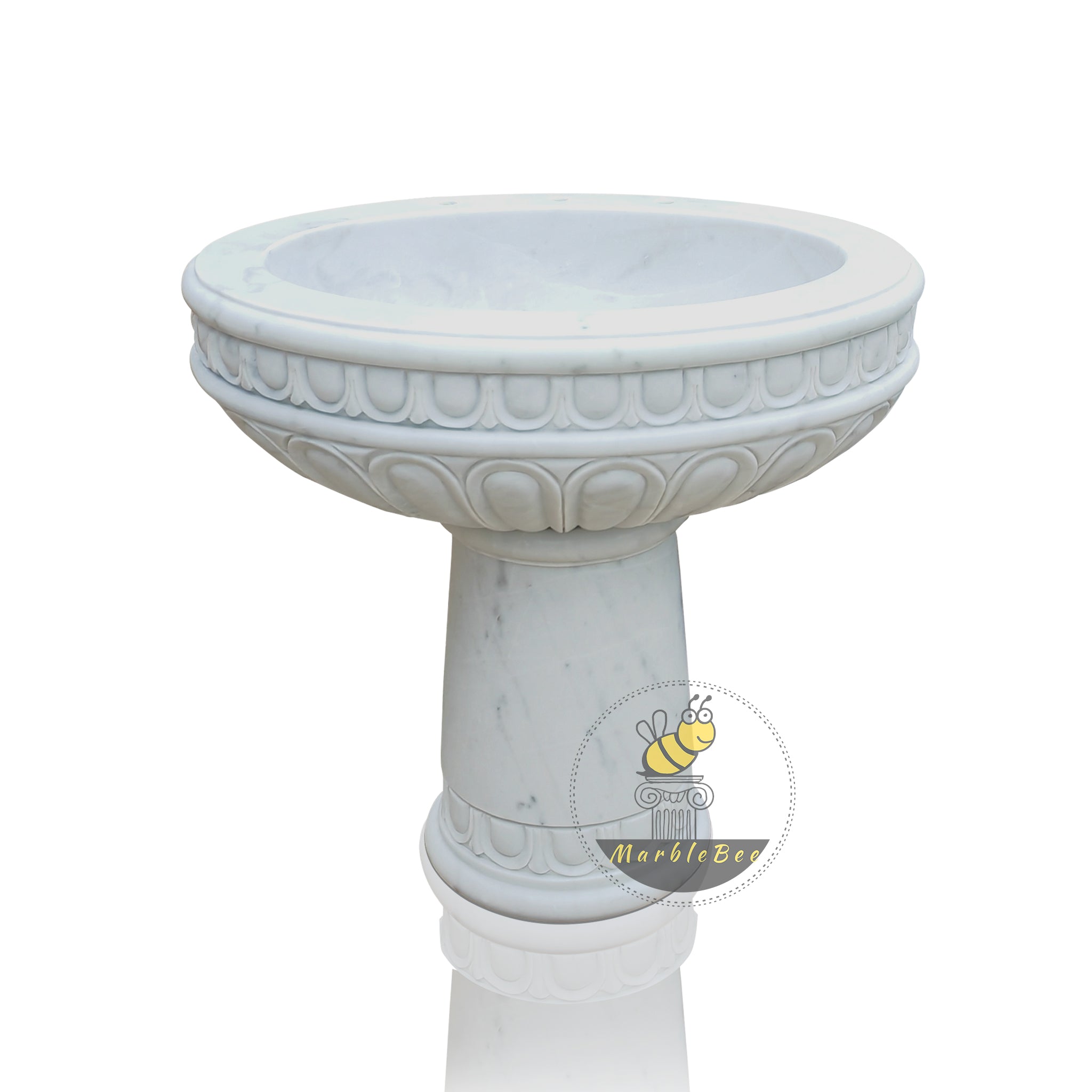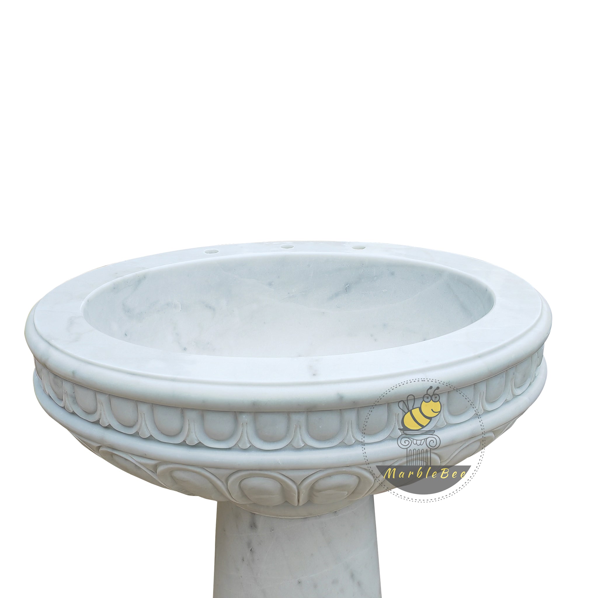 White Marble Basin With Column-Shaped Pedestal 32" Tall