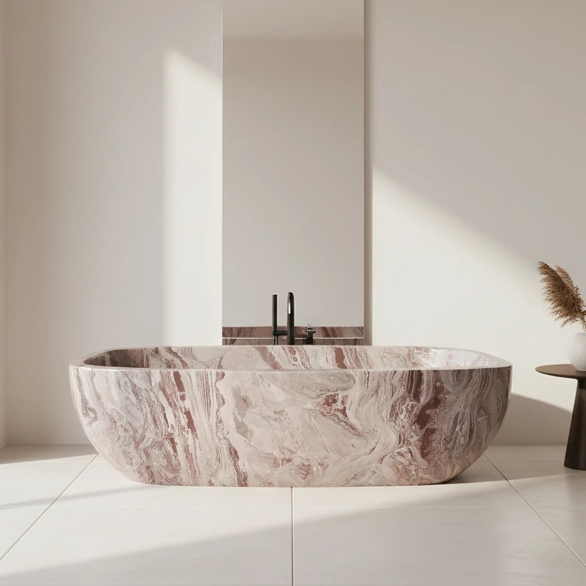 Marble Freestanding Tub | Rosa Levanto Deep Oval Soaking 70.87" Long