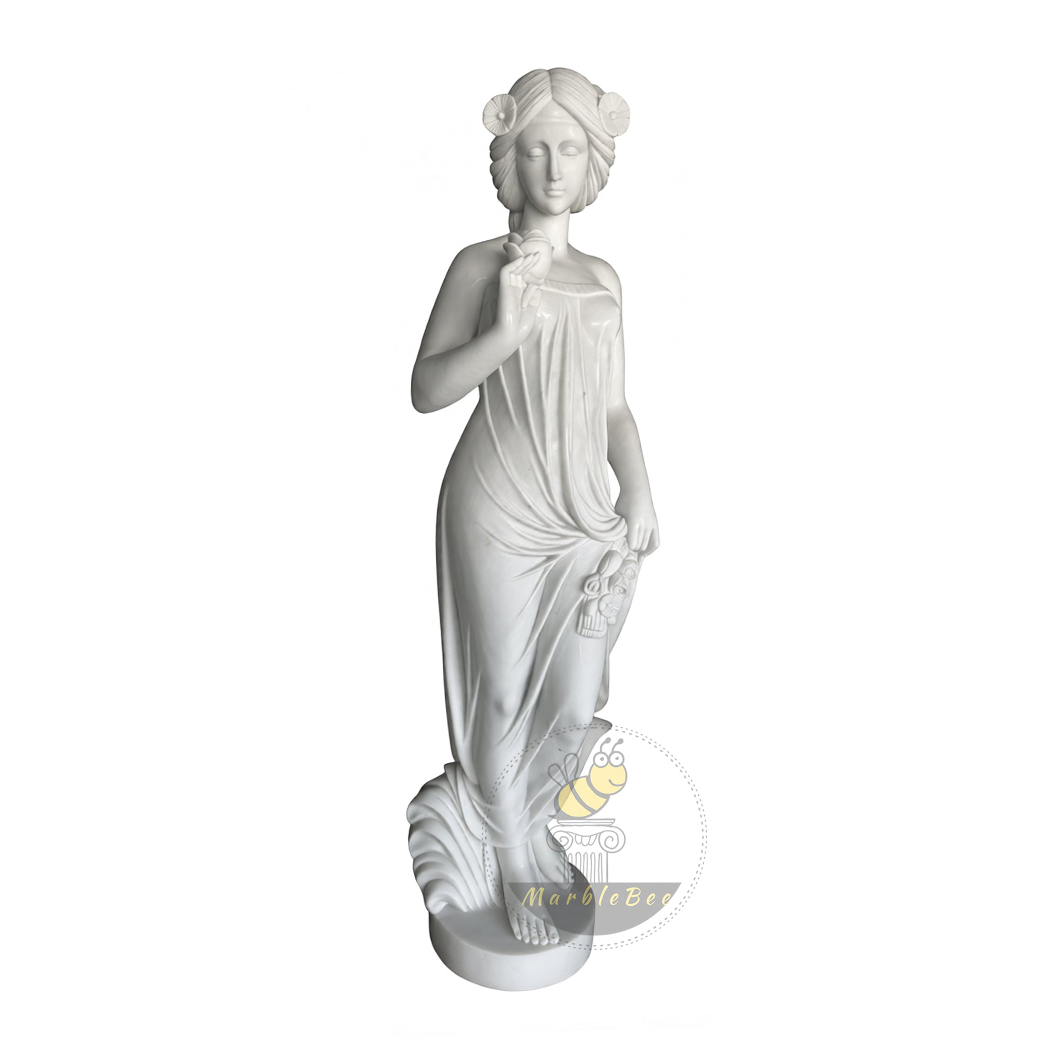 Marble sculpture of Flower Maiden in White Marble