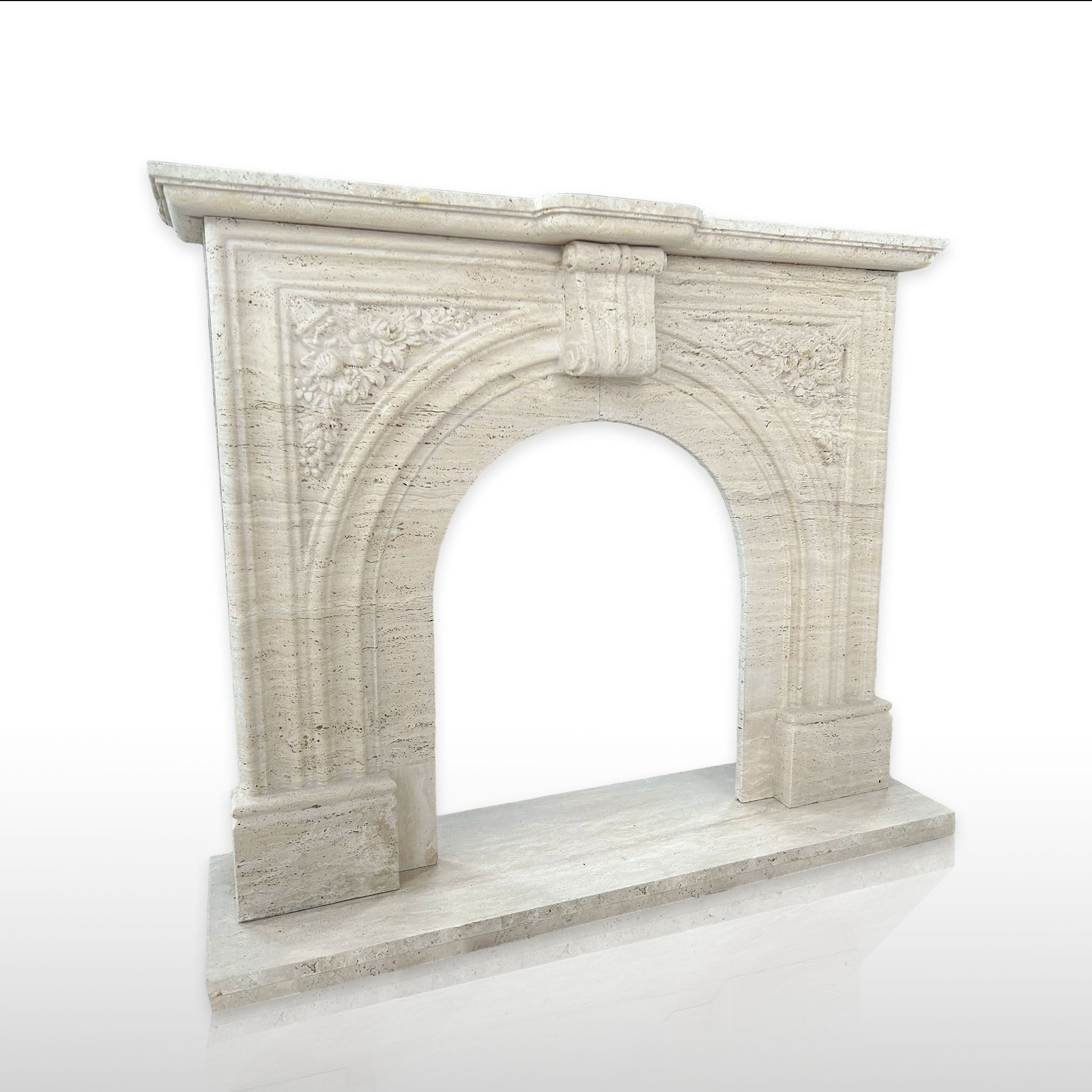 Travertine Mantel | Simple Curved Corbel Legs 50.79" Width x 43.31" Tall