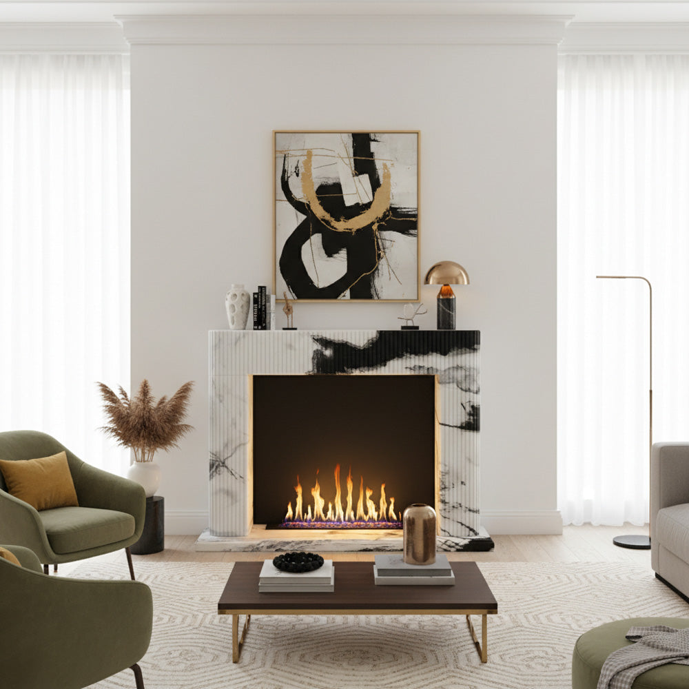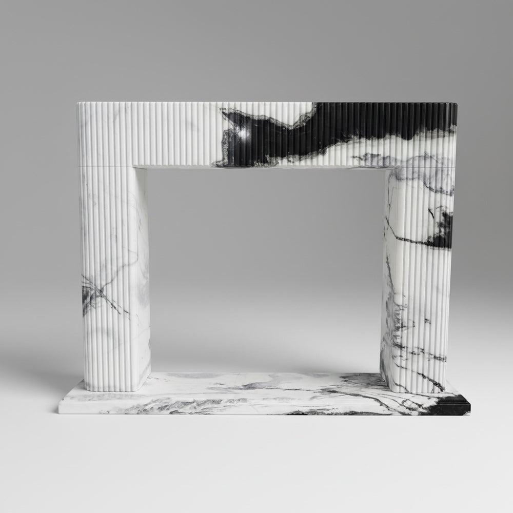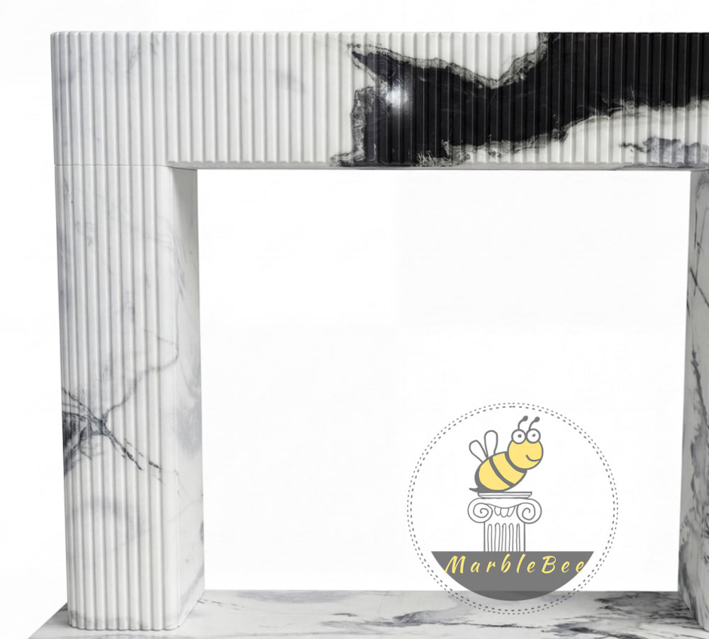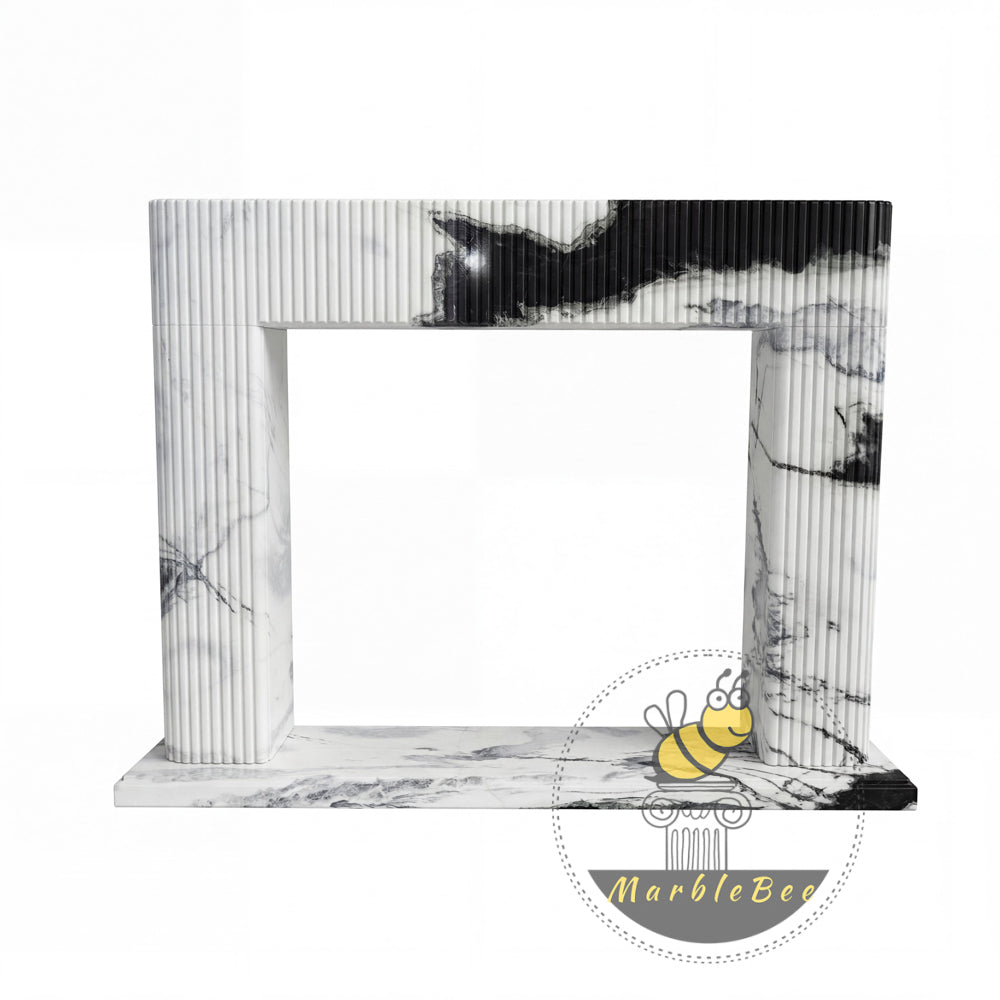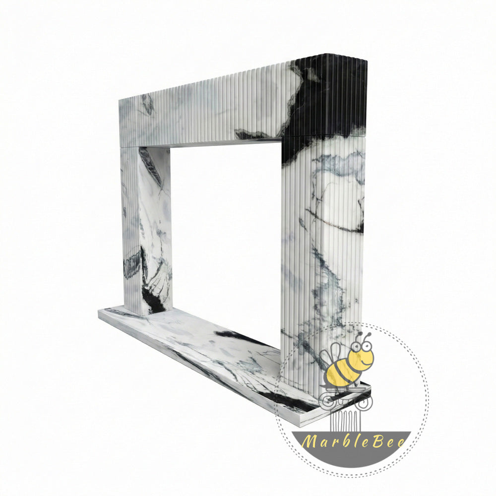 electric marble fireplace surround | Fluted Modern Design | Width 59" | Panda White