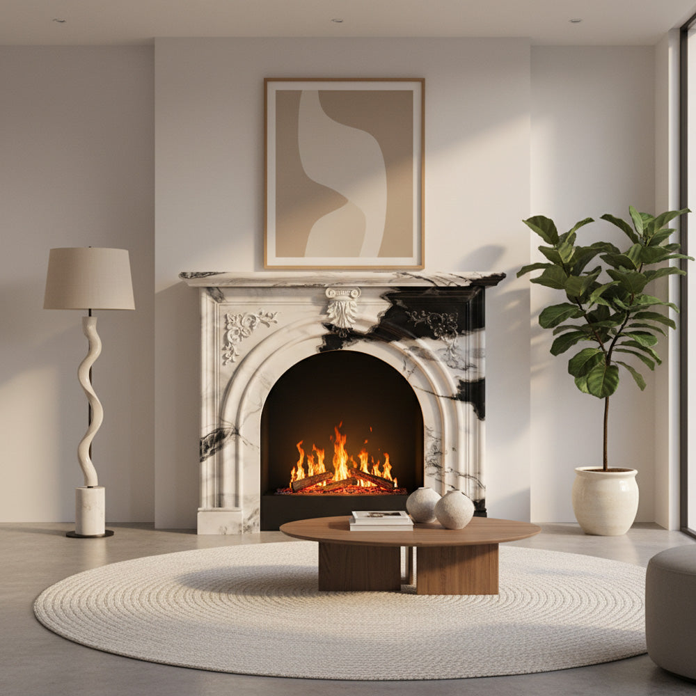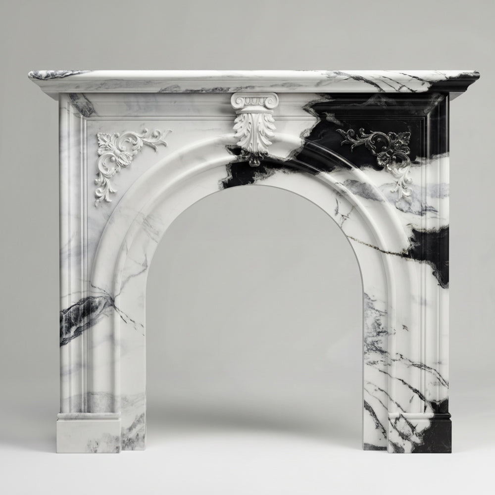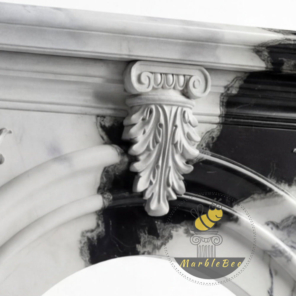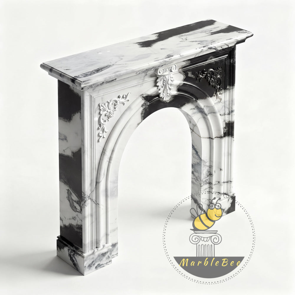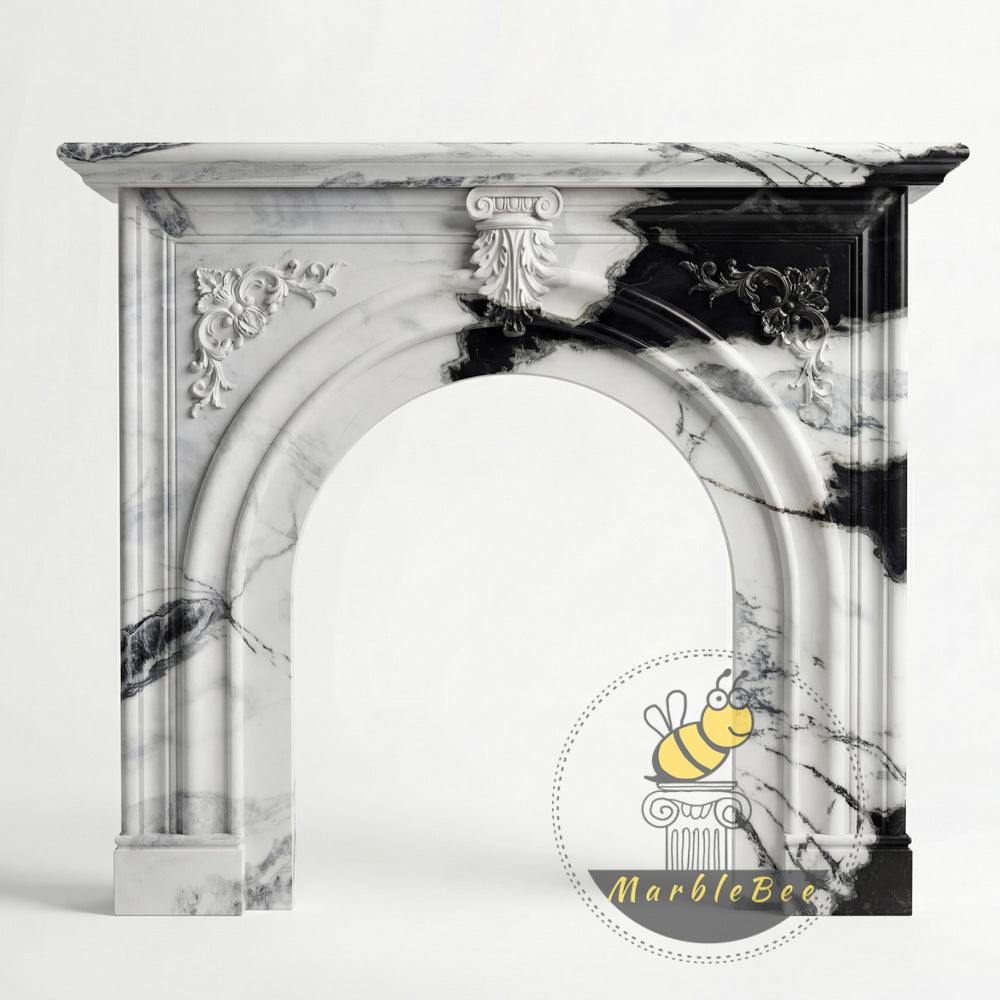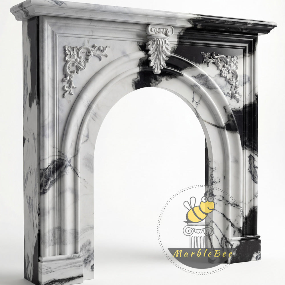 marble white fireplace | Arched Carved Design | Width: 59 Inch | Panda White