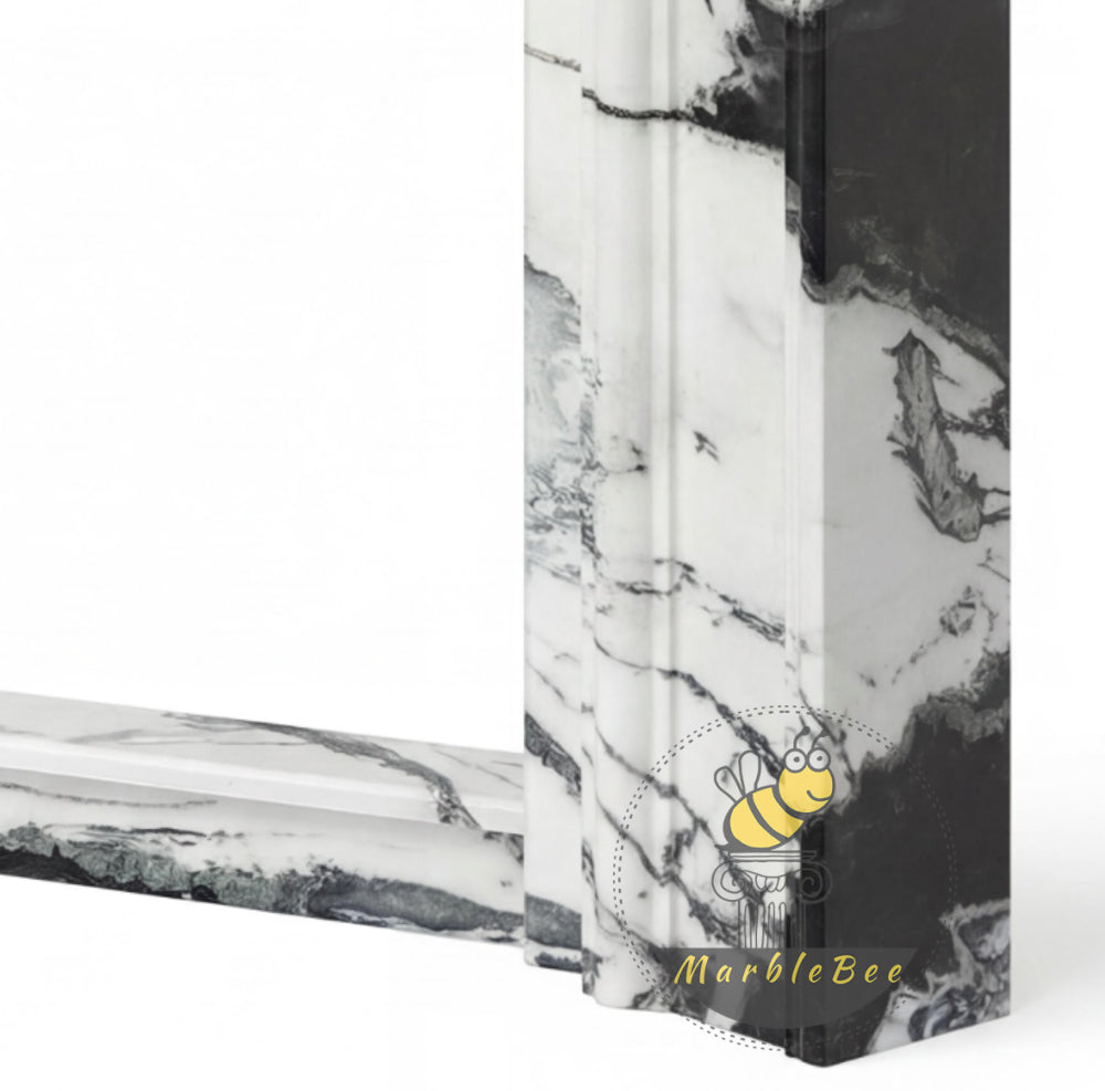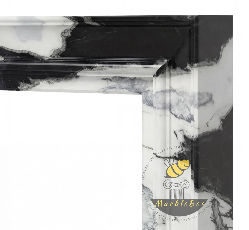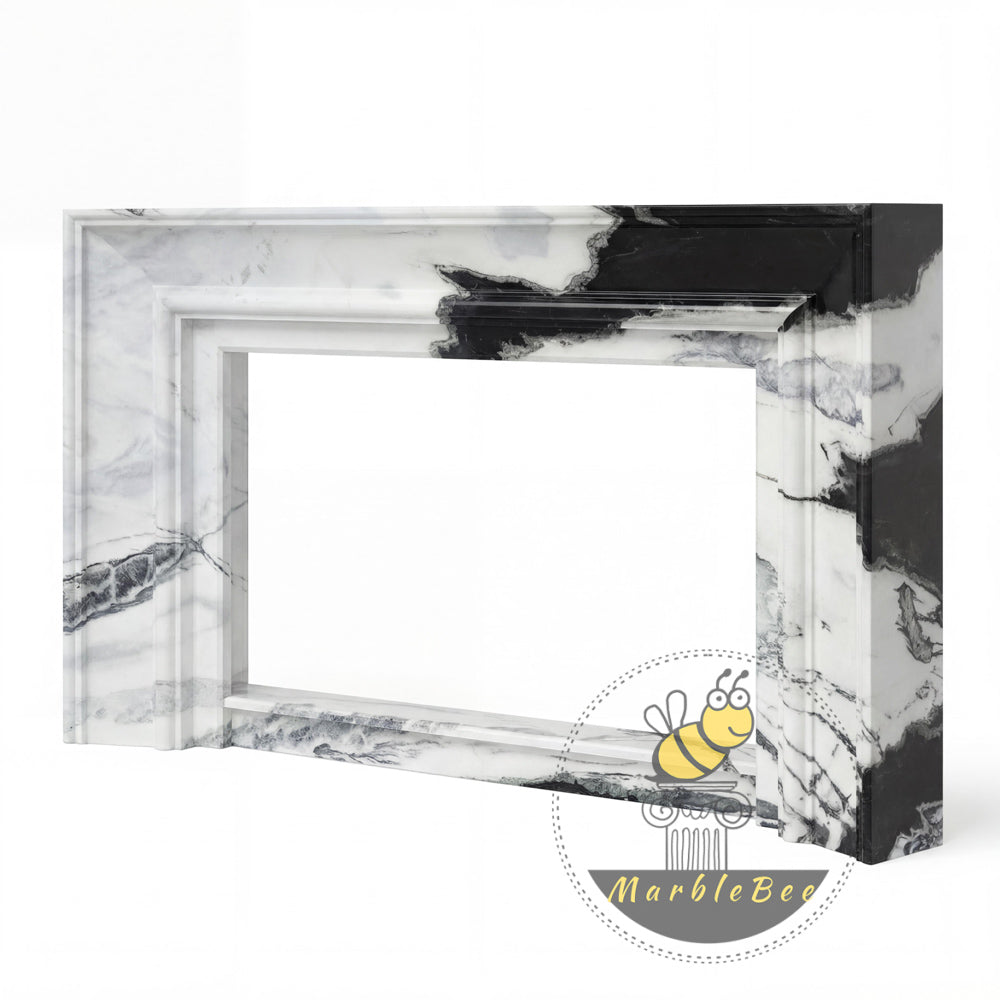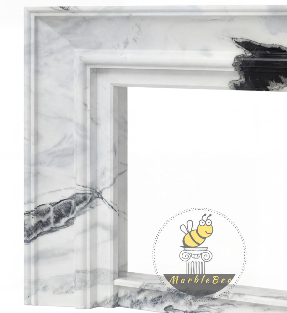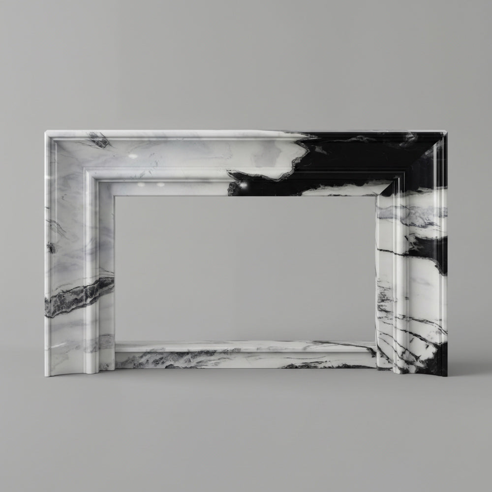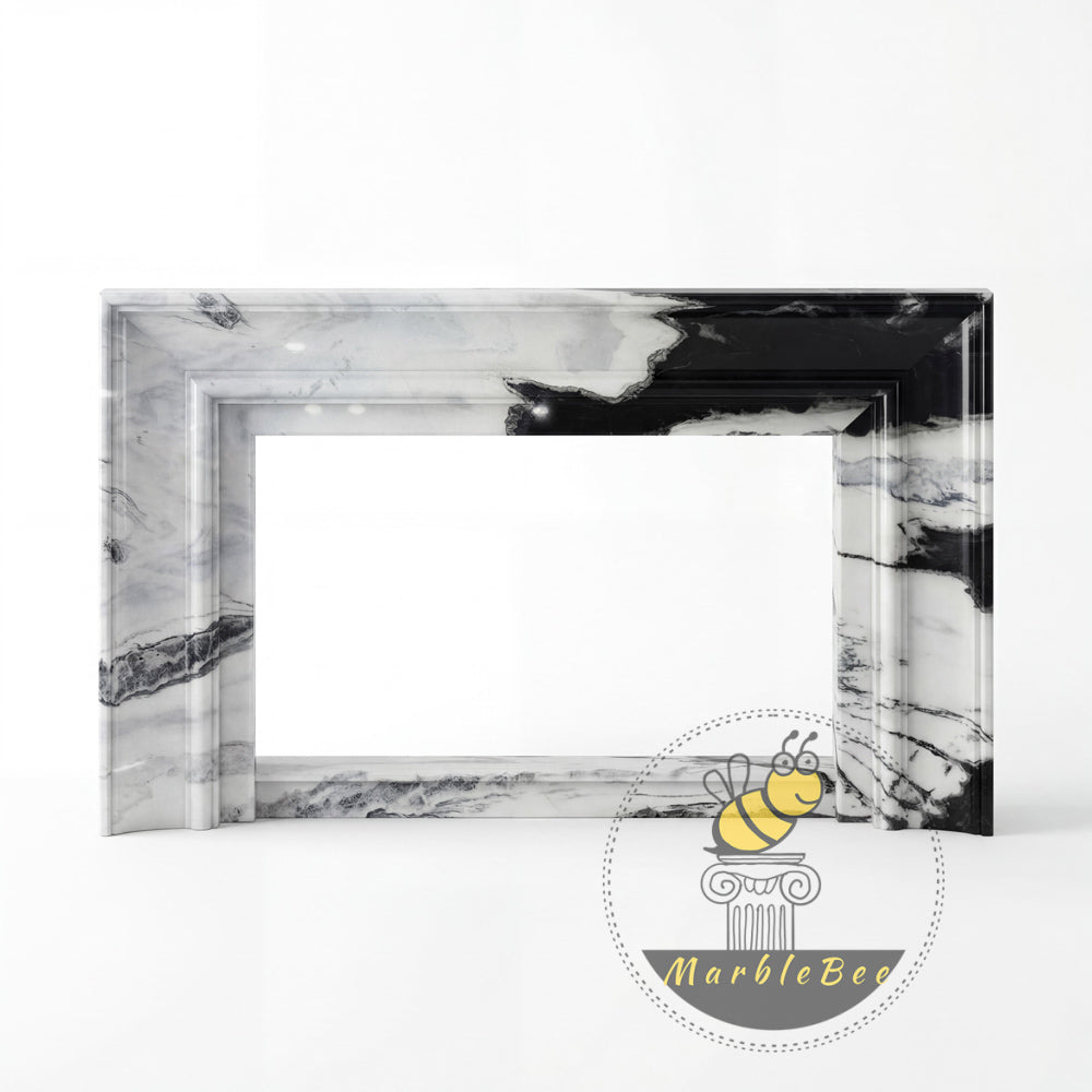modern marble fire surround | Bold Black Veining | Width 59 Inch | Panda White