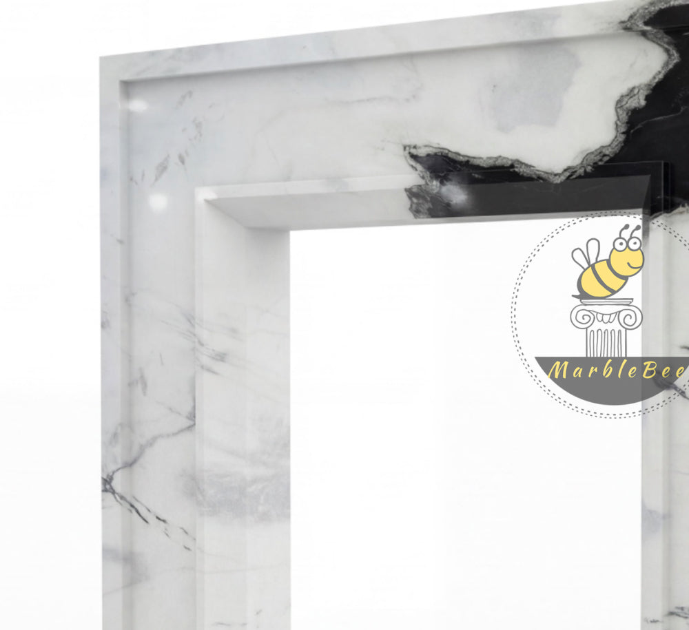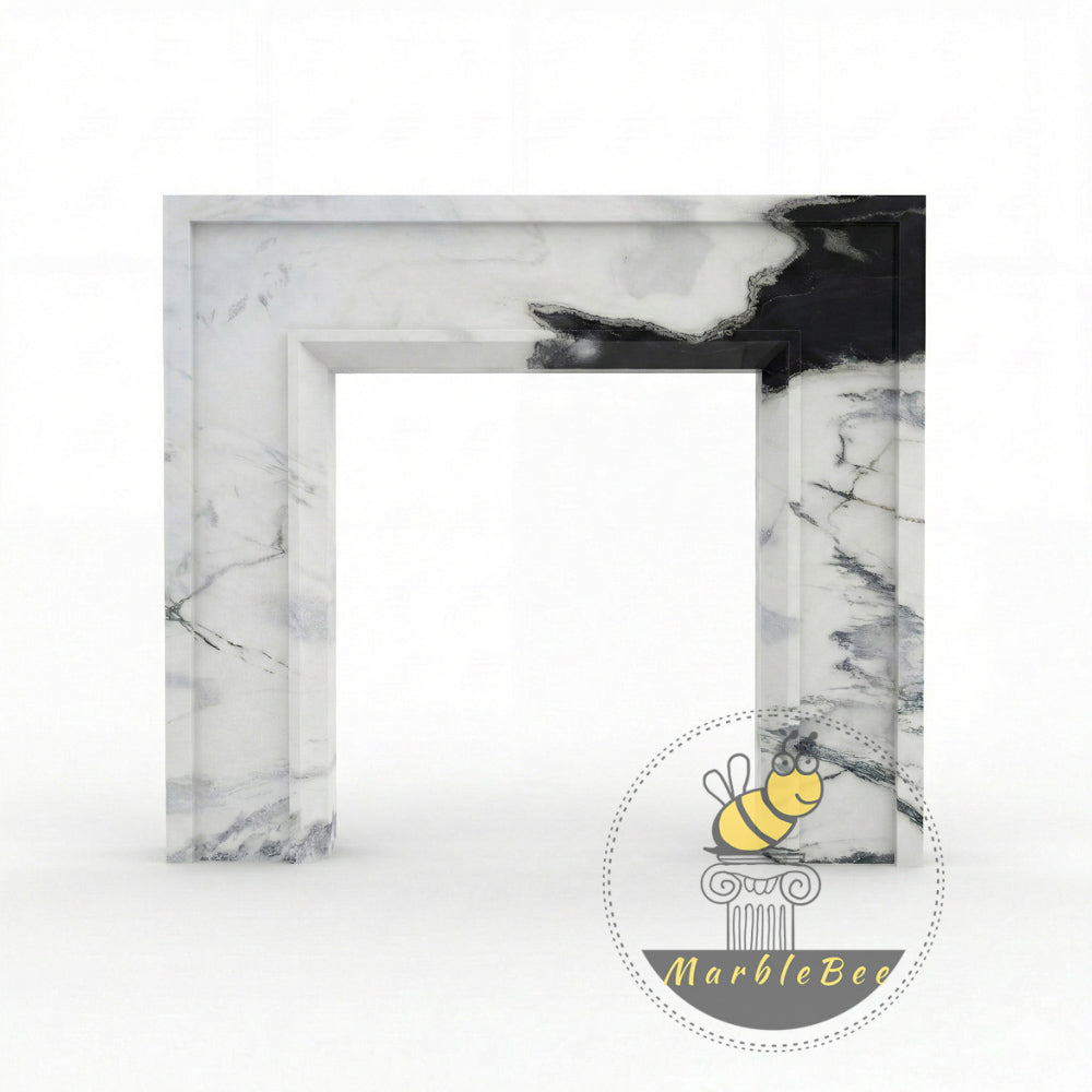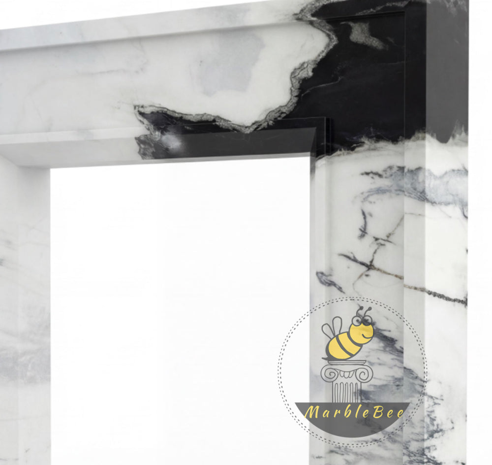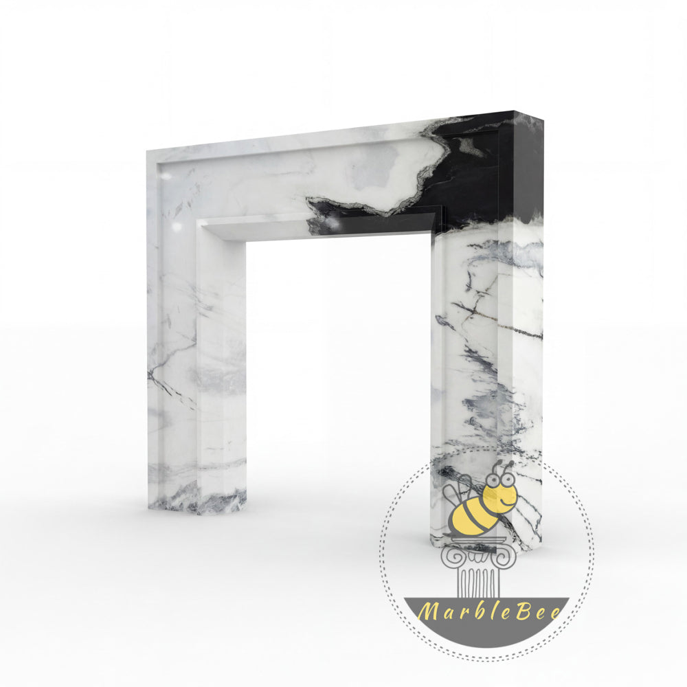waterfall marble fireplace surround | dramatic flowing veins | 59 Inch Width | Panda White