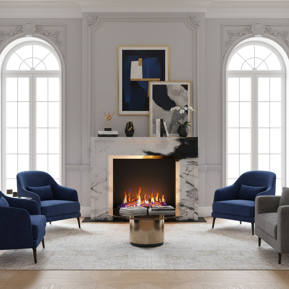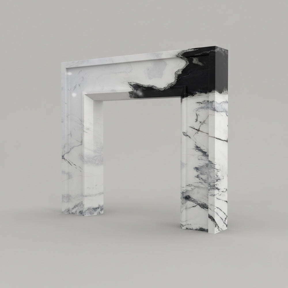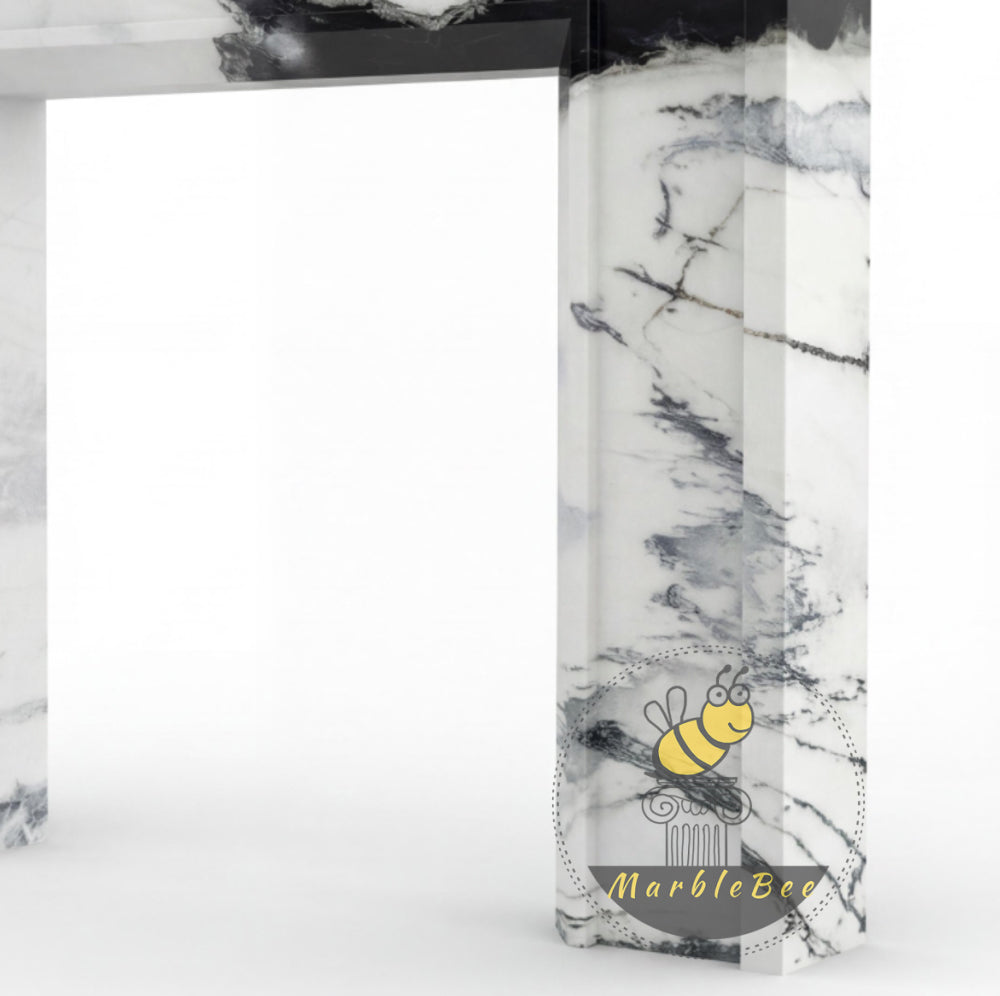 waterfall marble fireplace surround | dramatic flowing veins | 59 Inch Width | Panda White