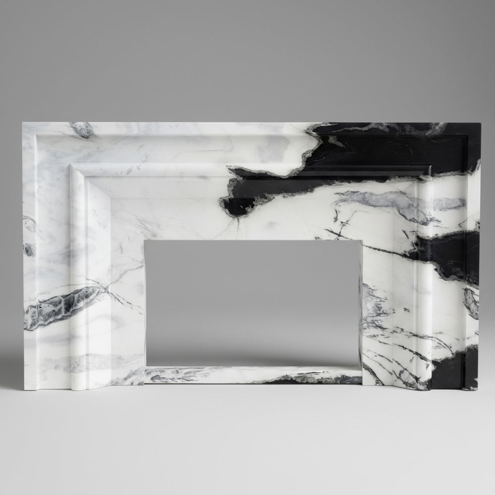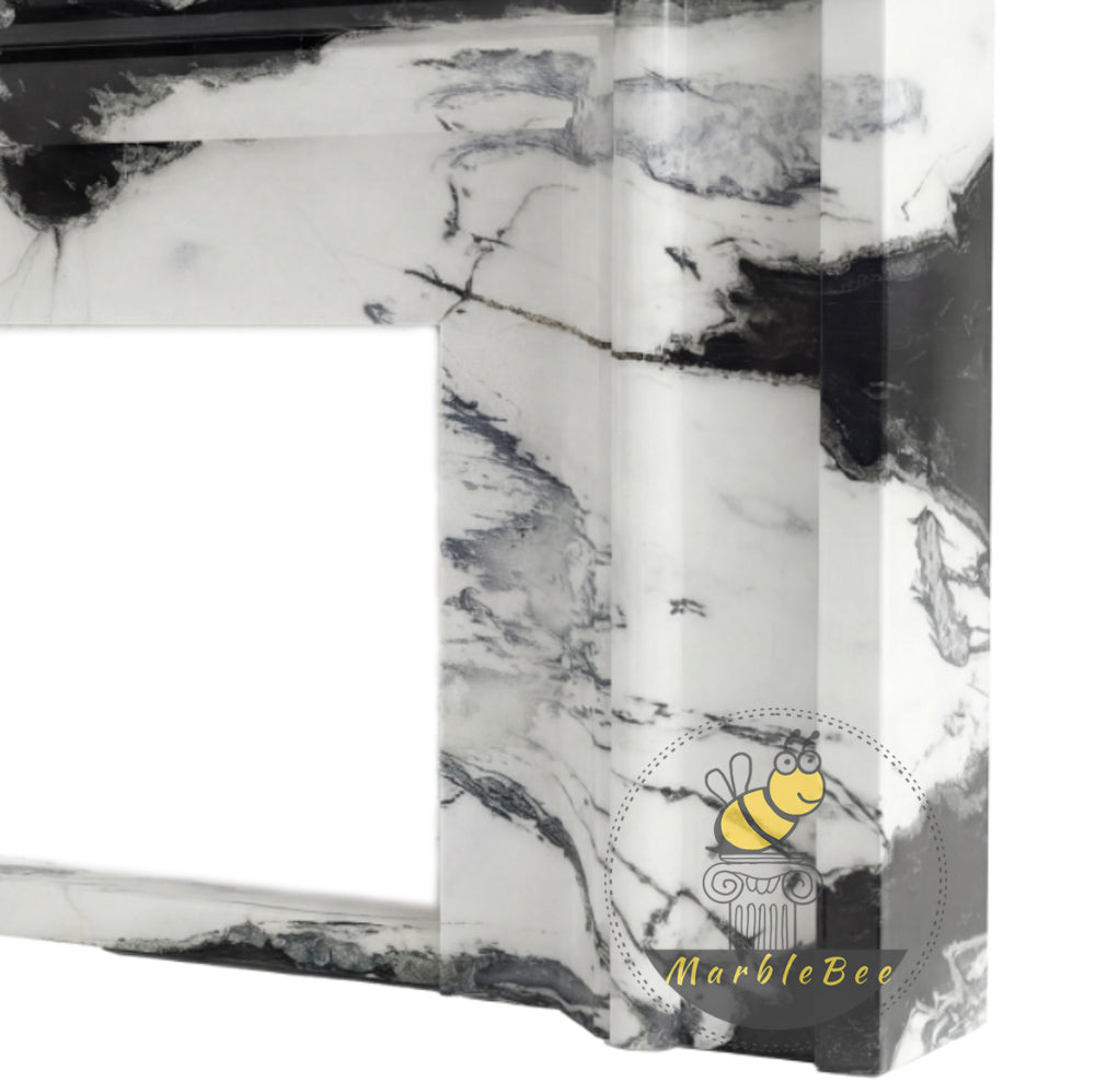 black white marble mantel | stepped modern profile | Width: 59.06 Inch | Panda White
