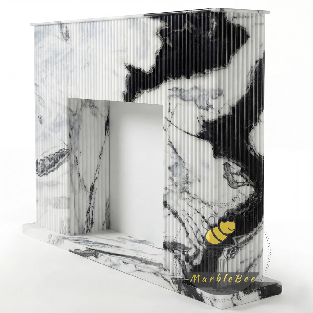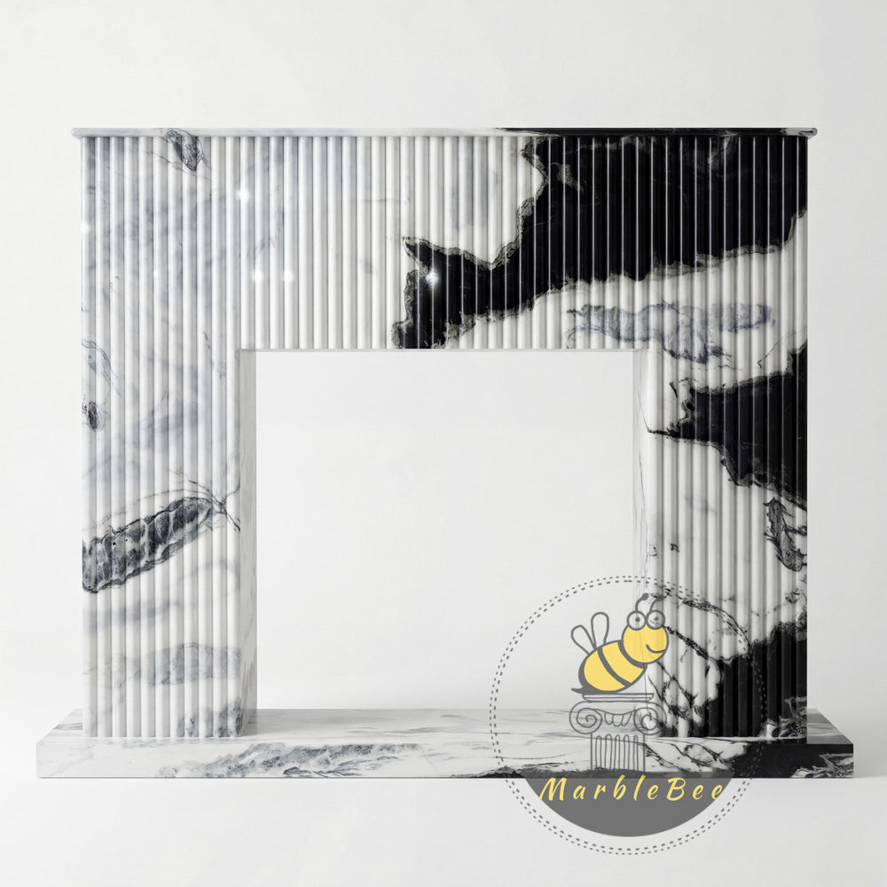 fluted modern marble fireplace surround | vertical reeded texture | 59" Width | Panda White