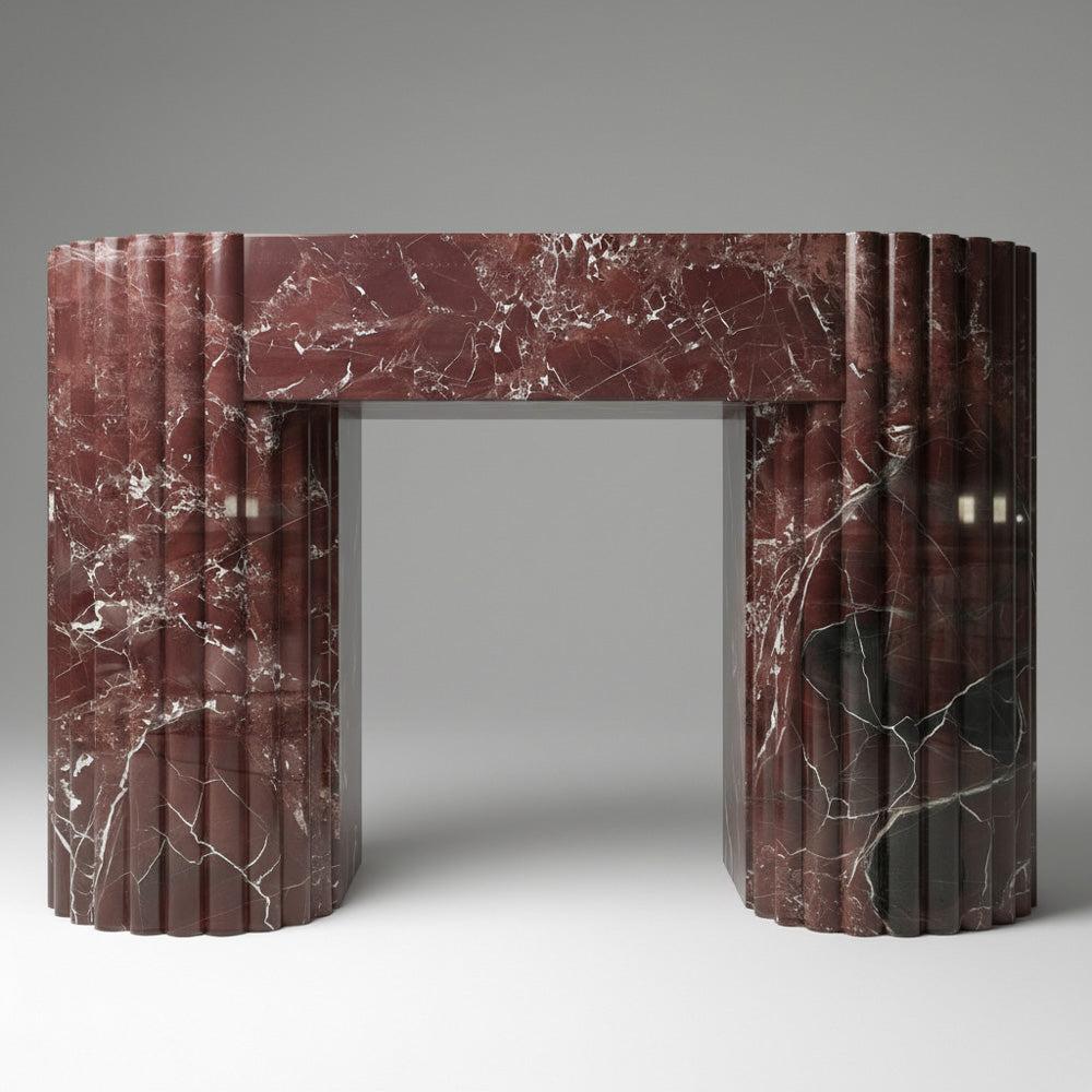 Marble around fireplace | Bold fluted columns | Width: 59.06" | Rosso Levanto