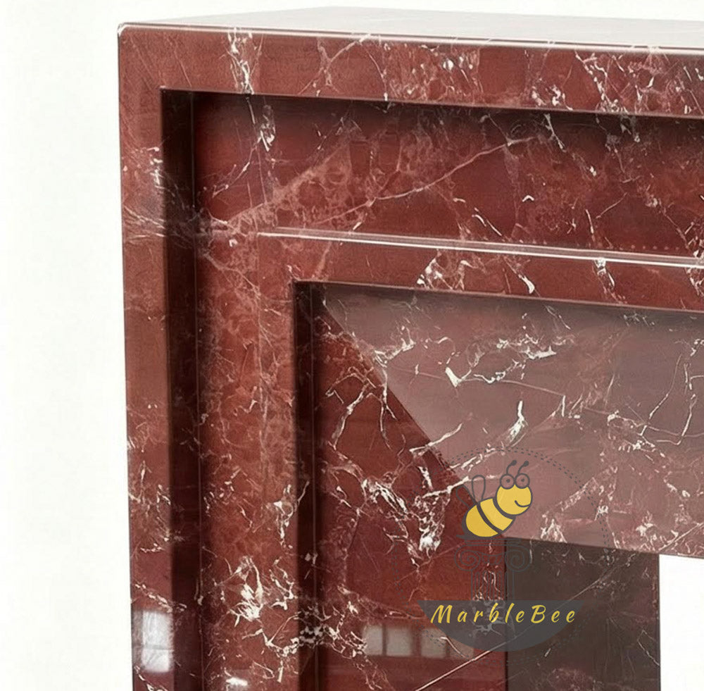 Marble fire place | Stepped Geometric Frame | Width 59" | Rosso Levanto