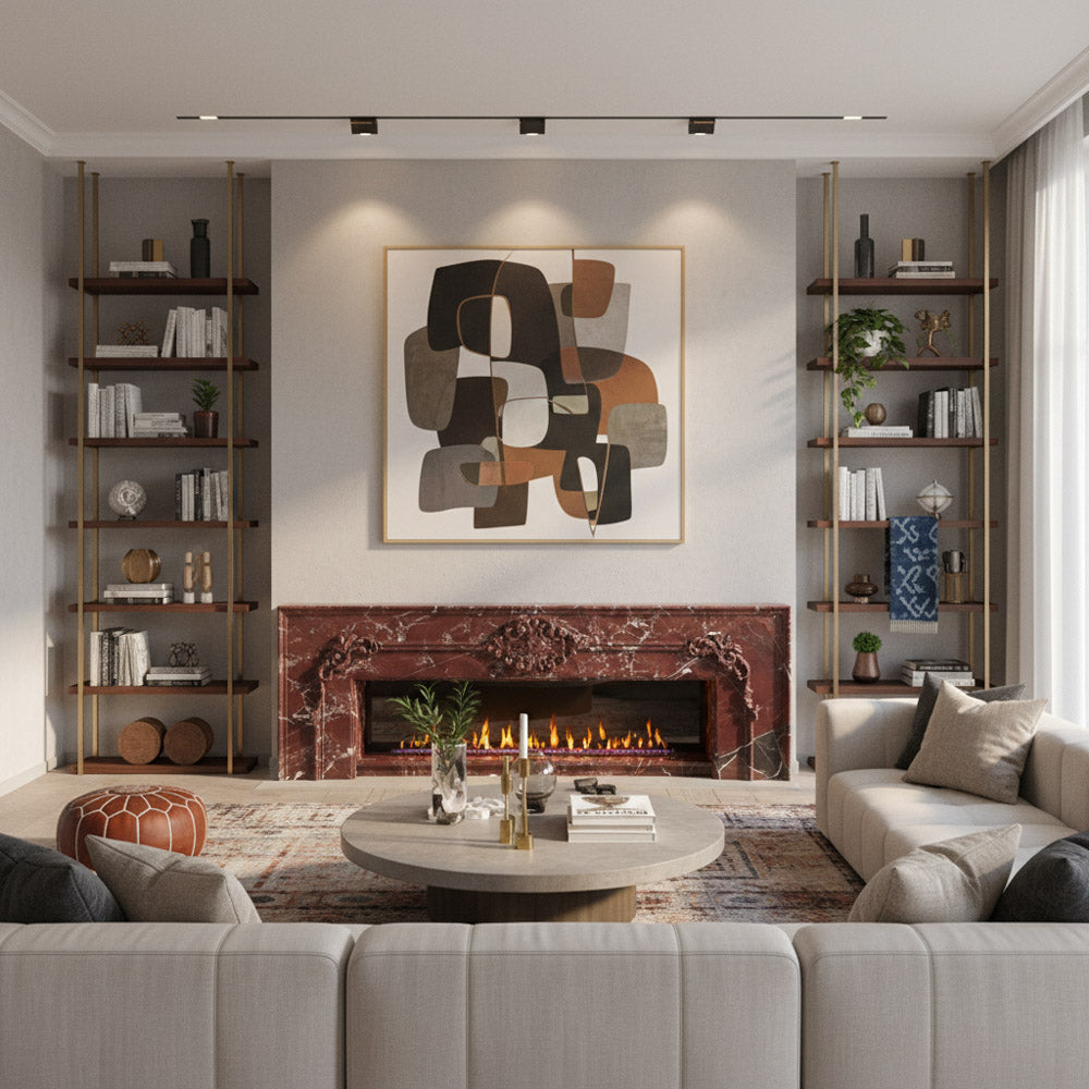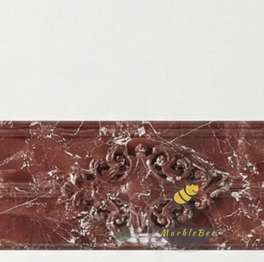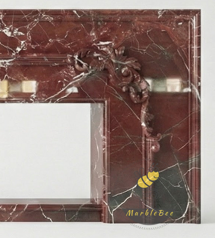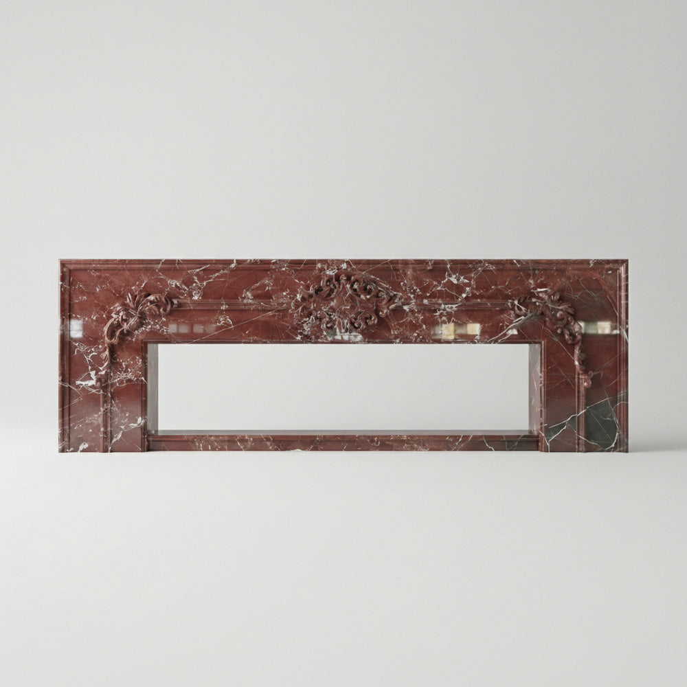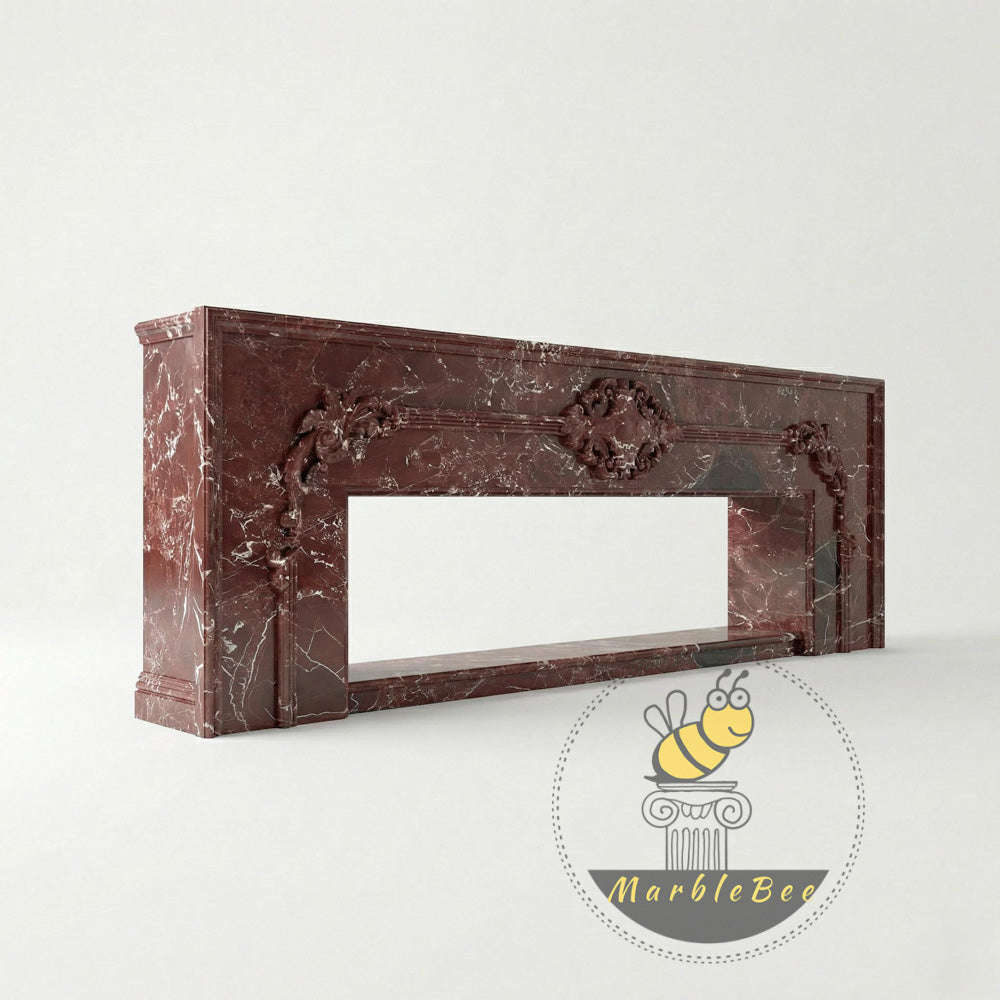 Marble fire surround | Ornate hand-carved details | Width: 63 Inch | Rosso Levanto