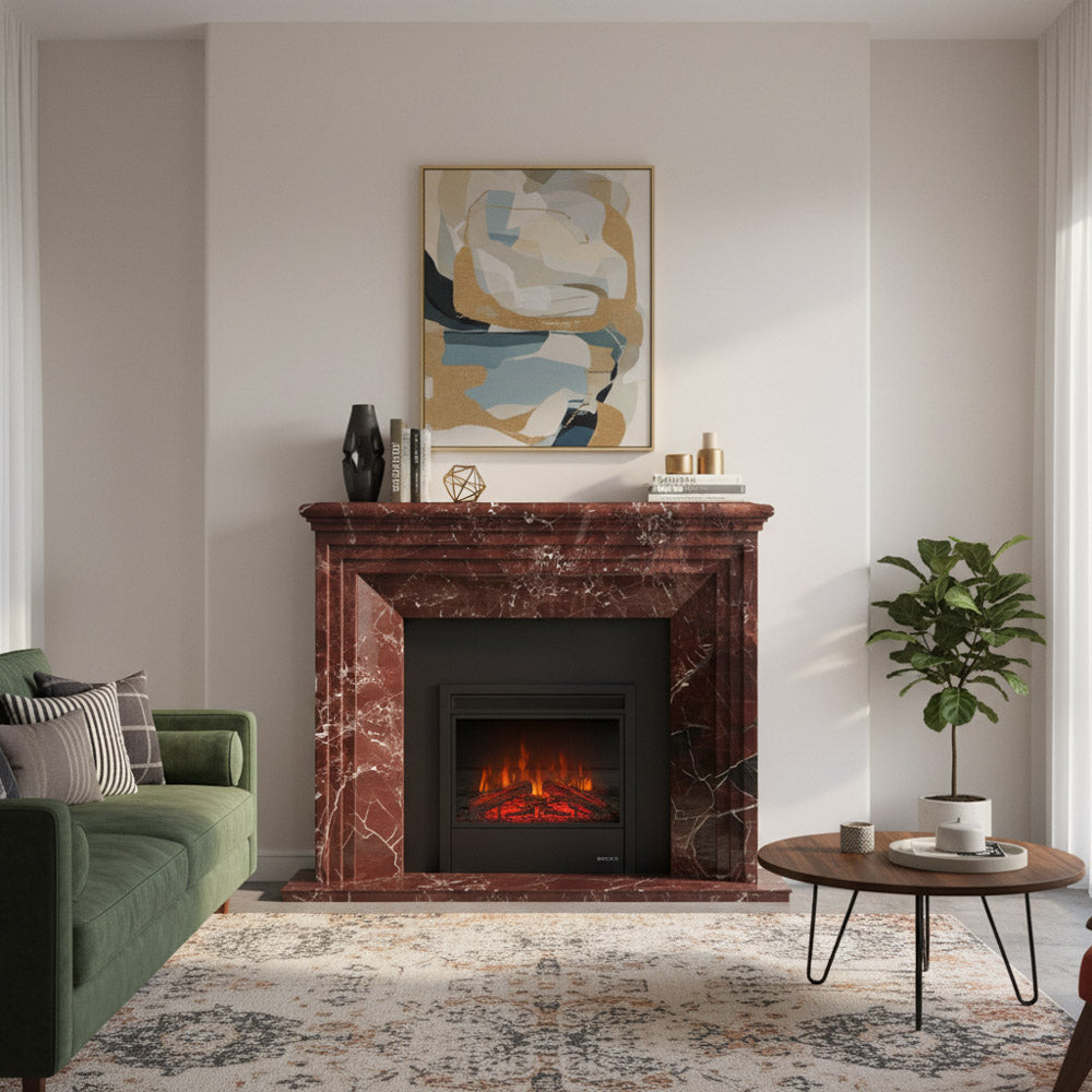 Marble fire surround | Red veined modern | Width 59 Inch | Rosso Levanto