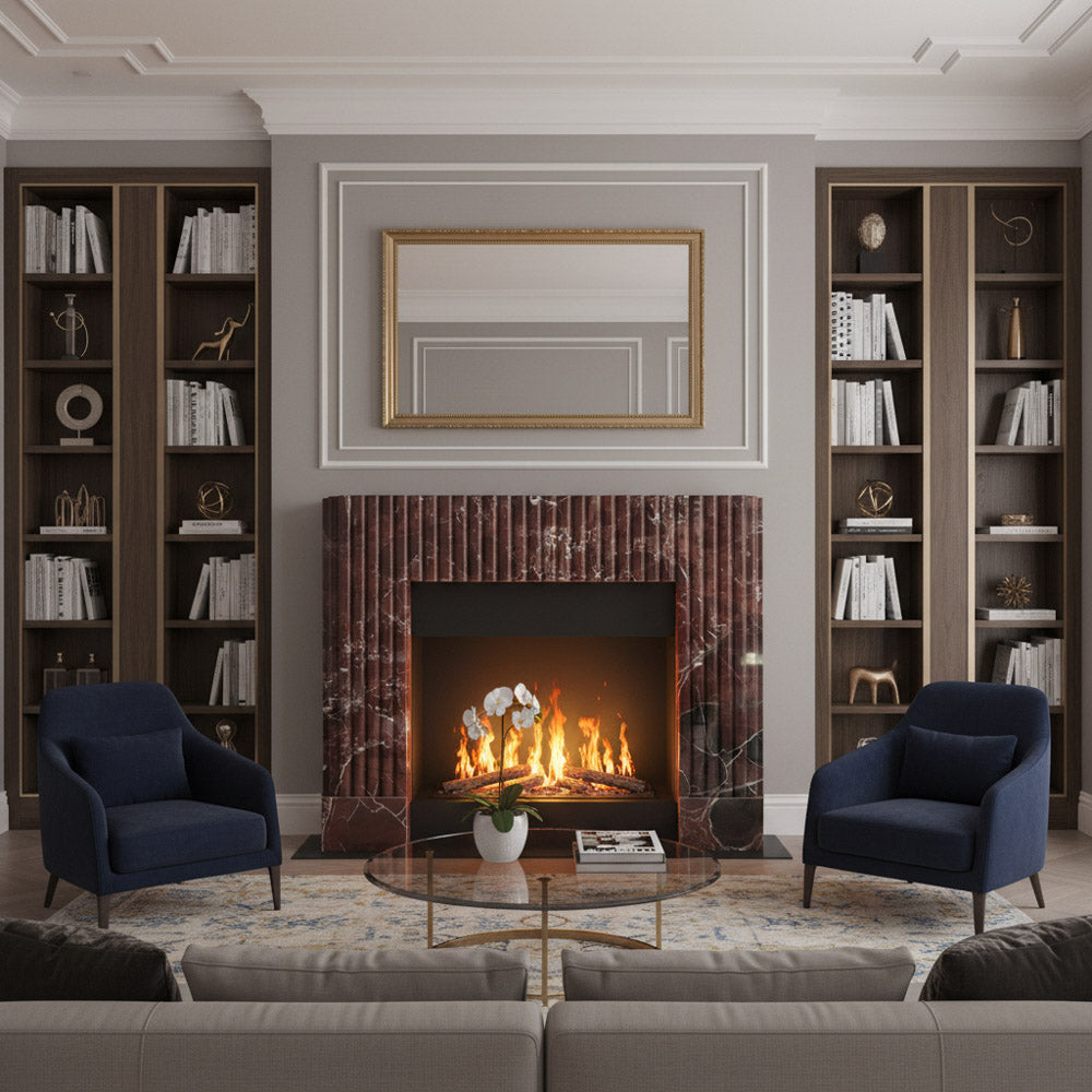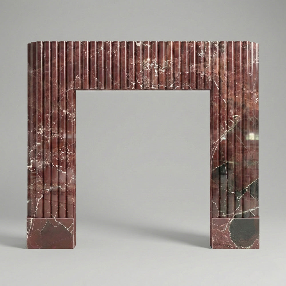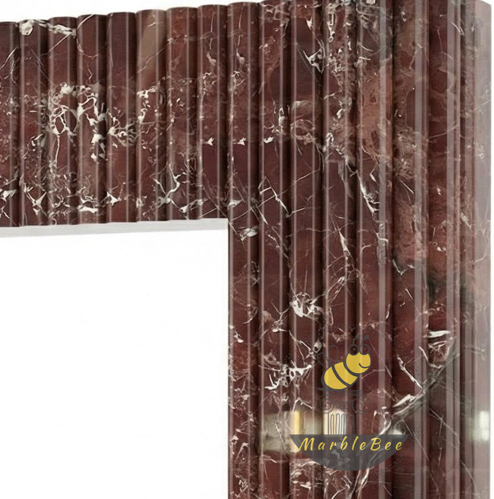 Marble fire surround with electric fire | Fluted Burgundy Design | 59 Inch Width | Rosso Levanto