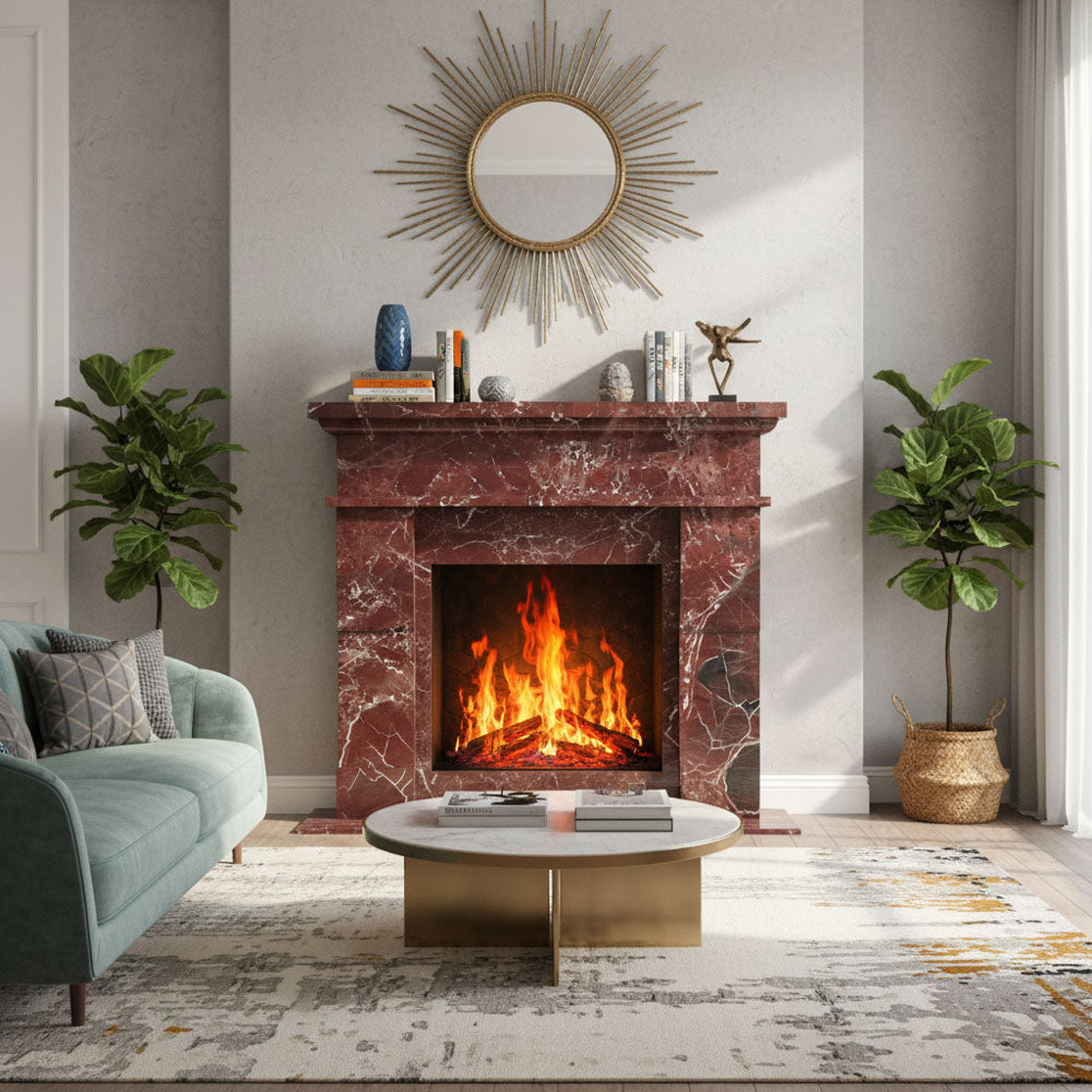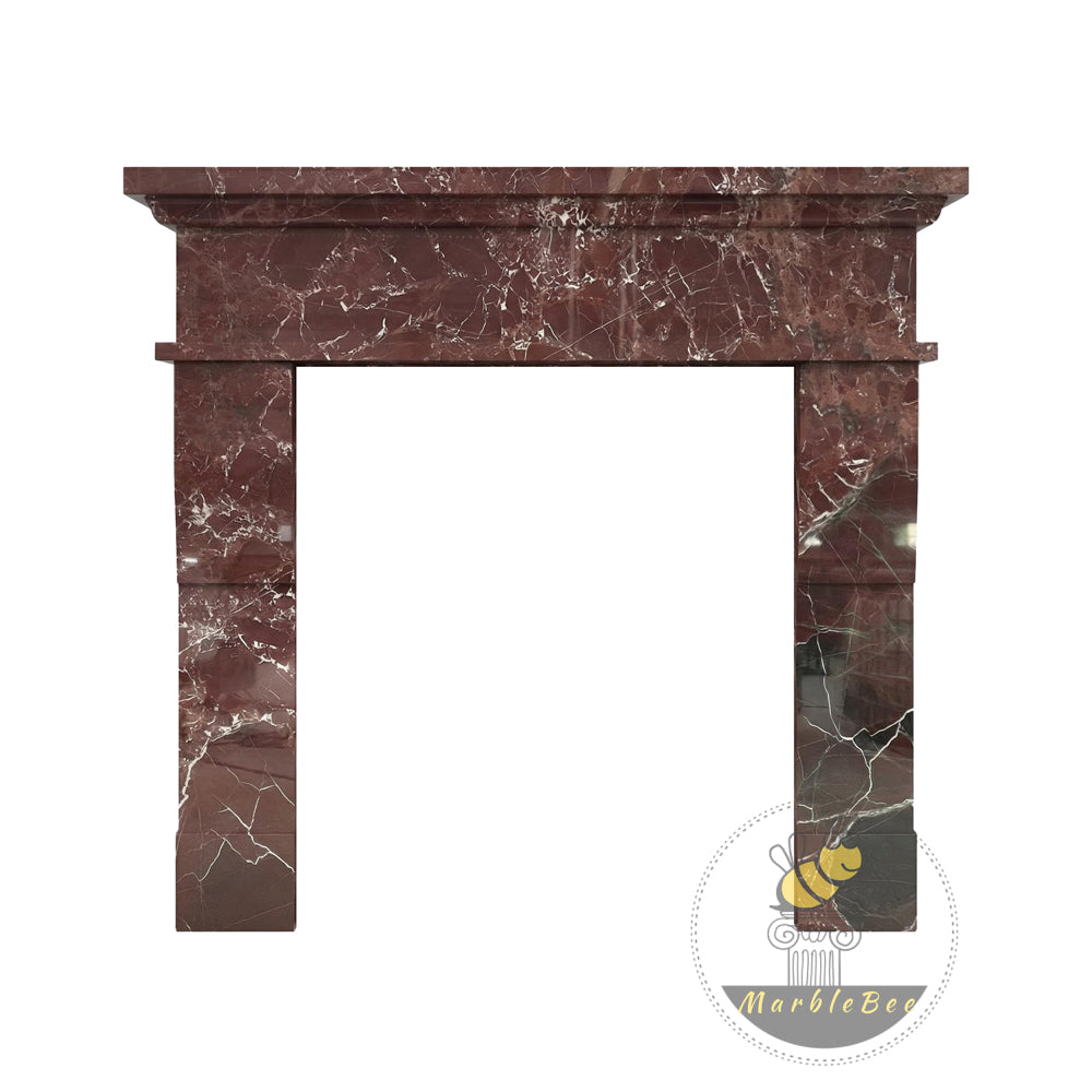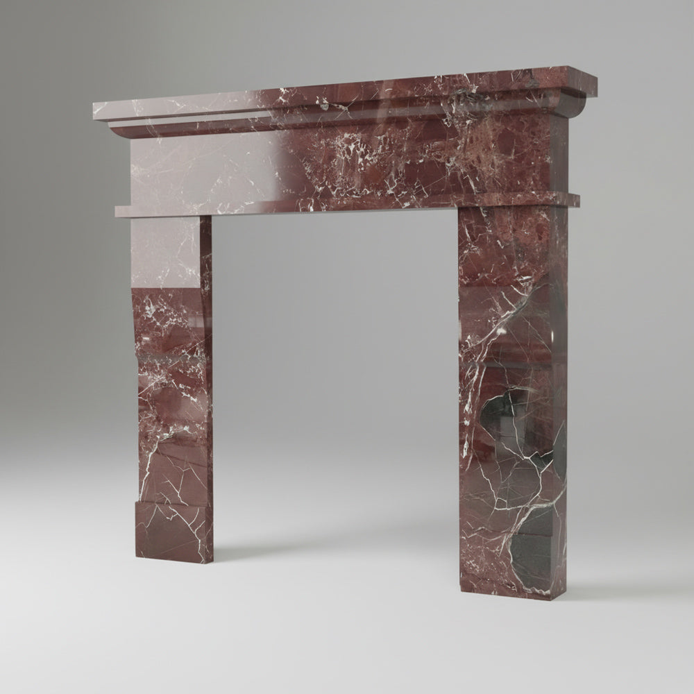 Marble fireplace hearth | Polished stepped pilasters | Width: 59.06 Inch | Rosso Levanto