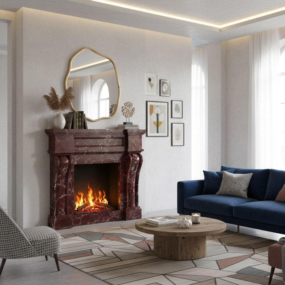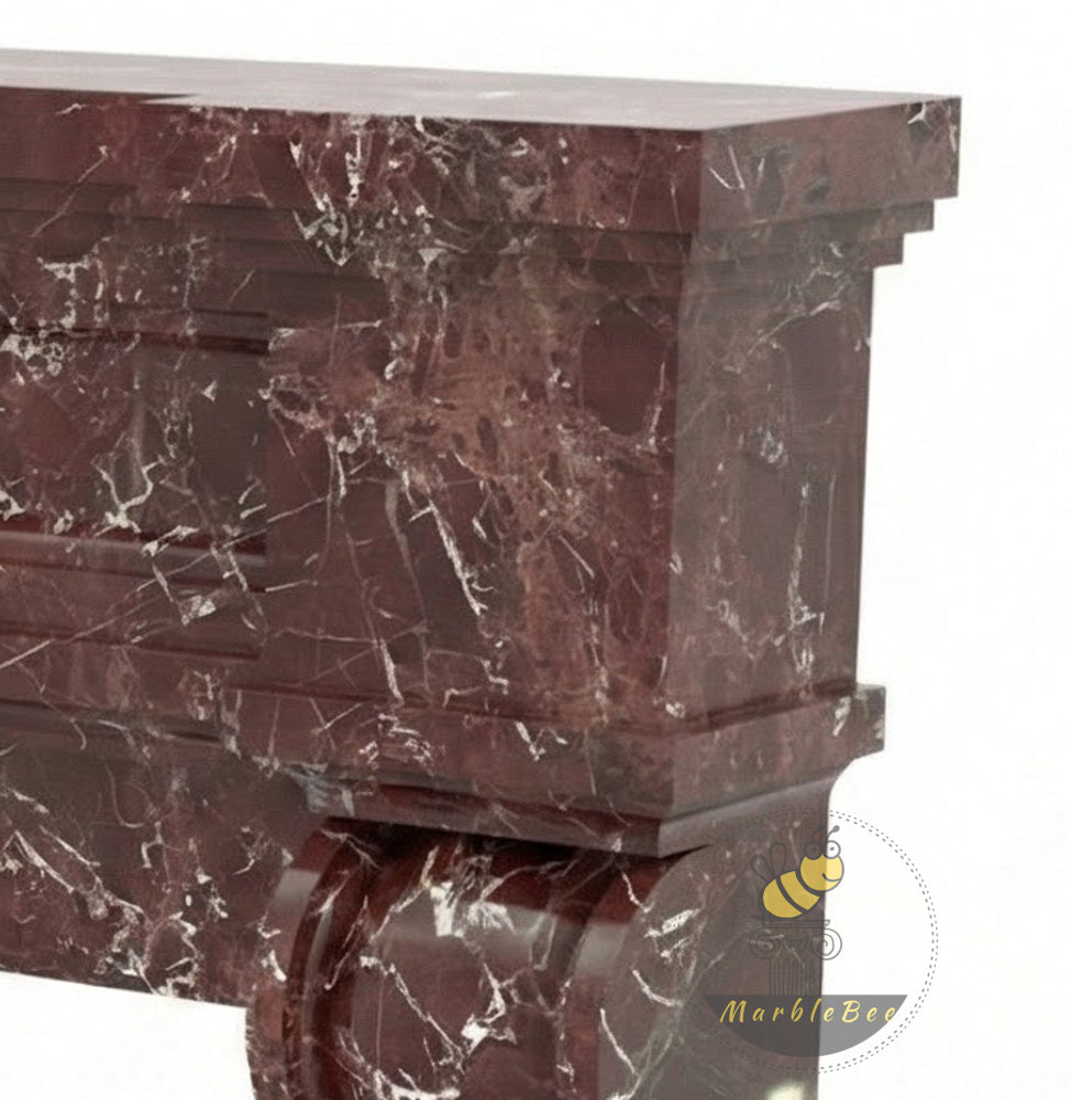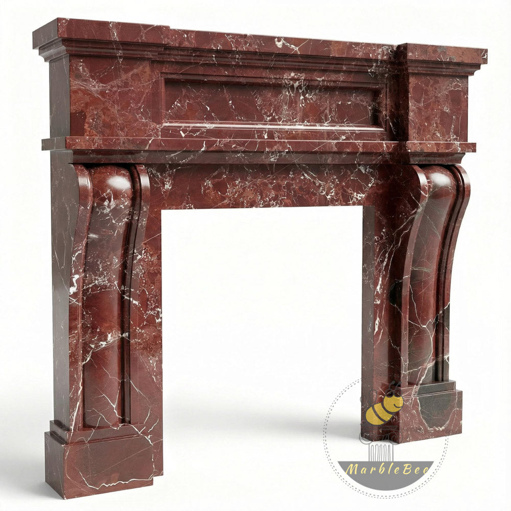 Marble fireplace mantel | curved scrolled jambs | 55 Inch Width | Rosso Levanto
