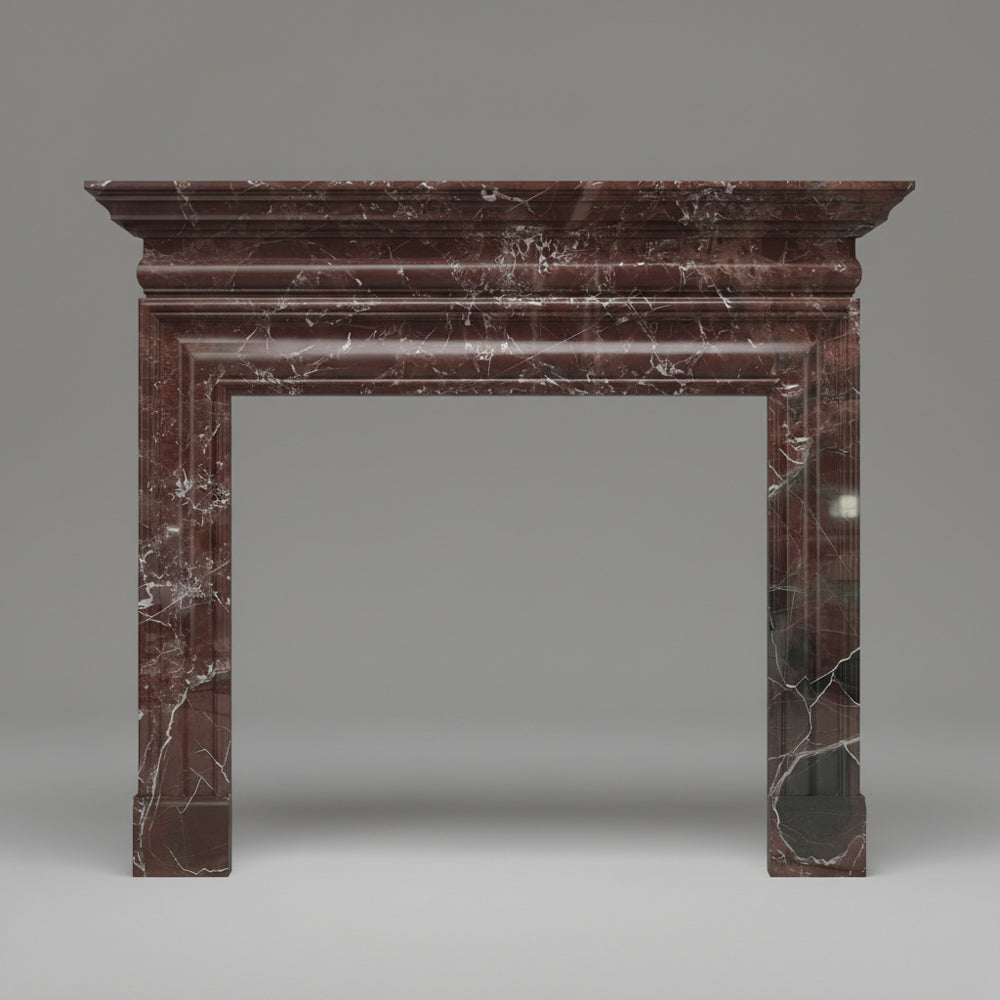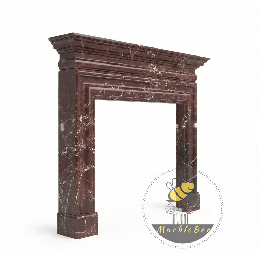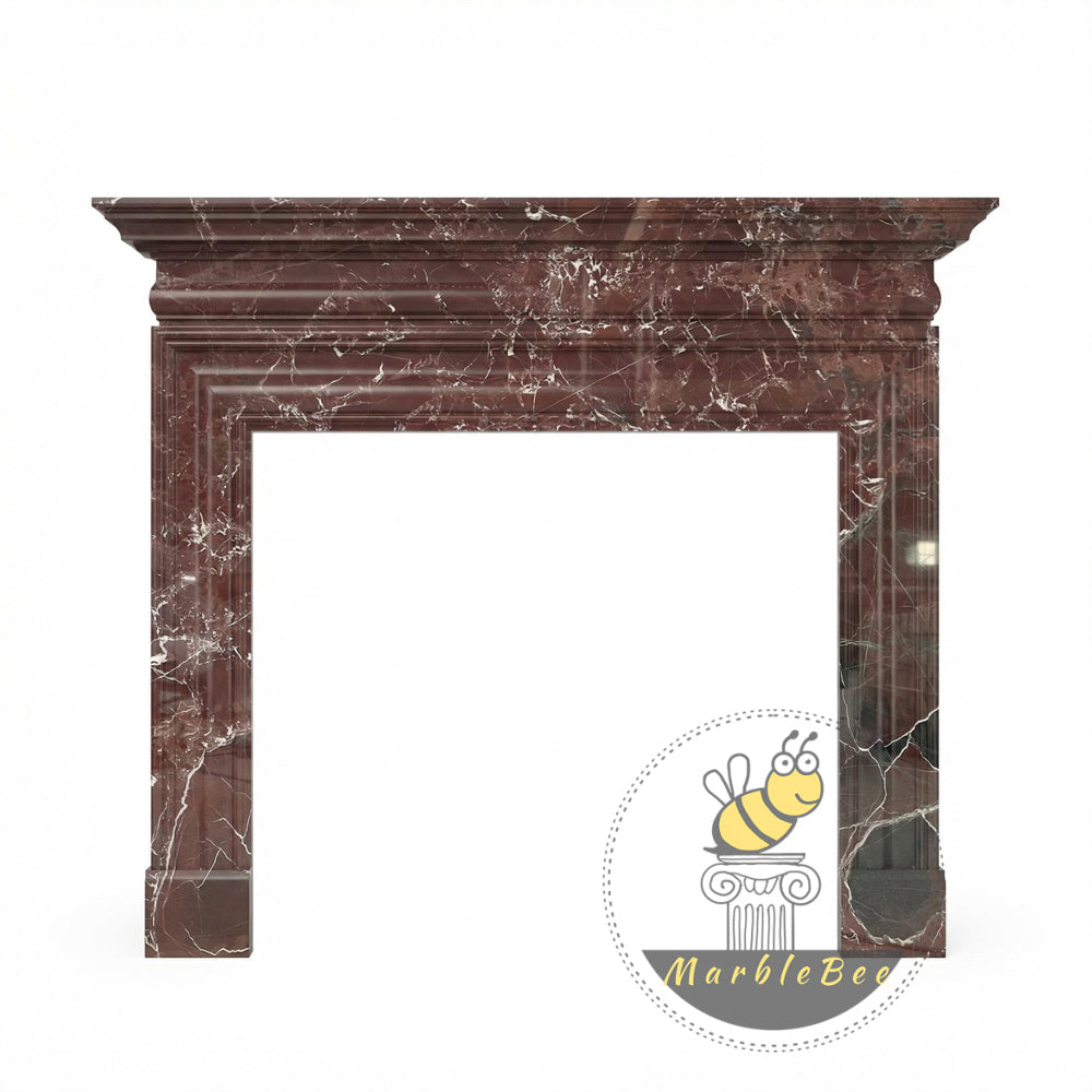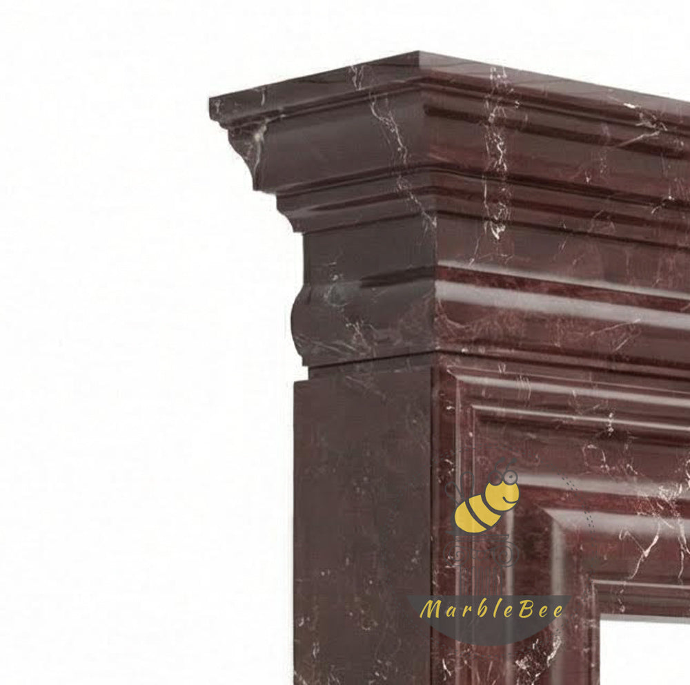 Marble fireplace mantels for sale | Stepped red linear | Width 59" | Rosso Levanto