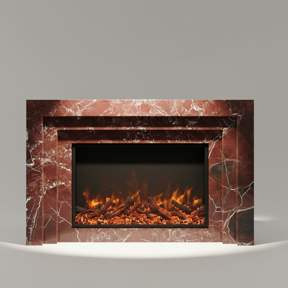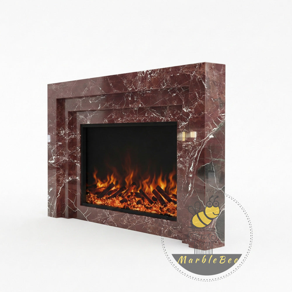 Marble fireplace | Red stepped geometric | 59 Inch Width | Rosso Levanto