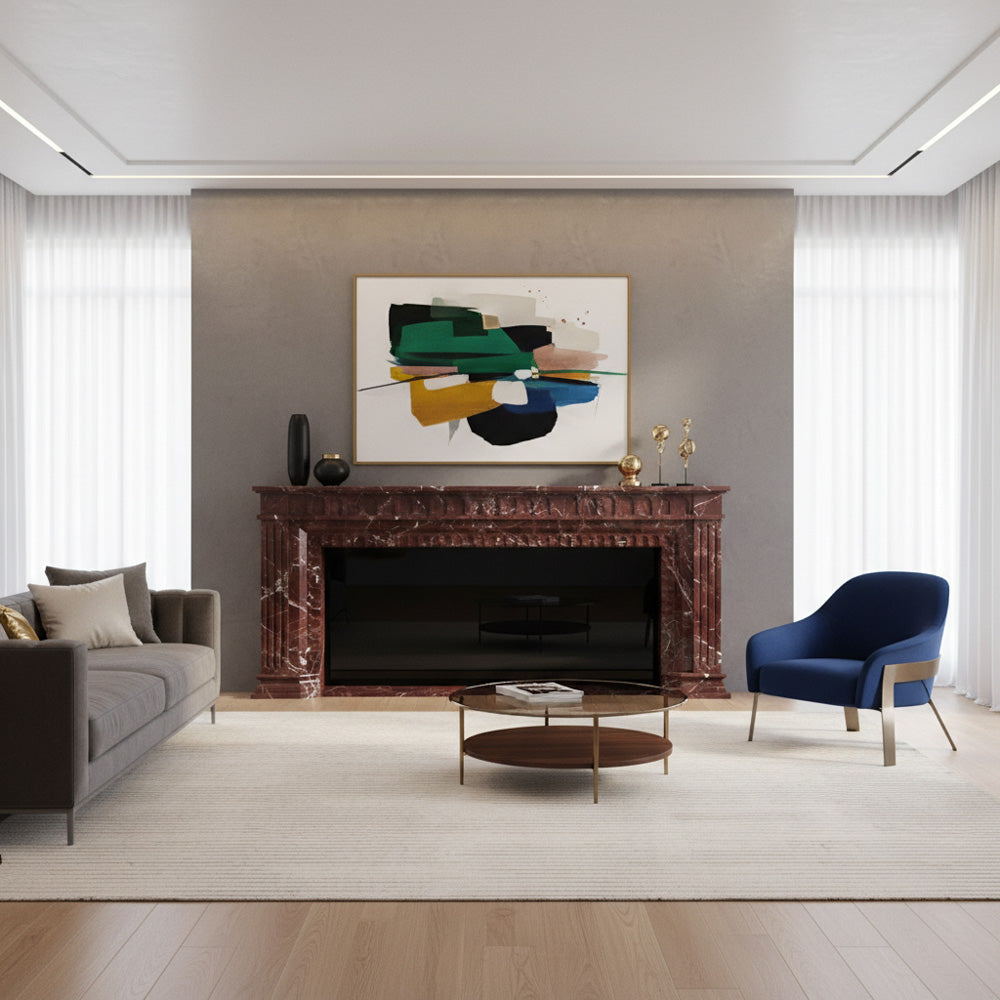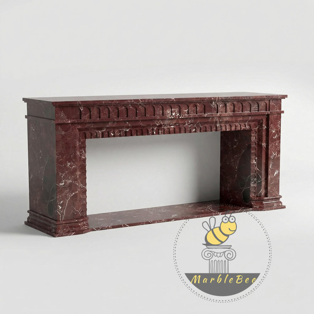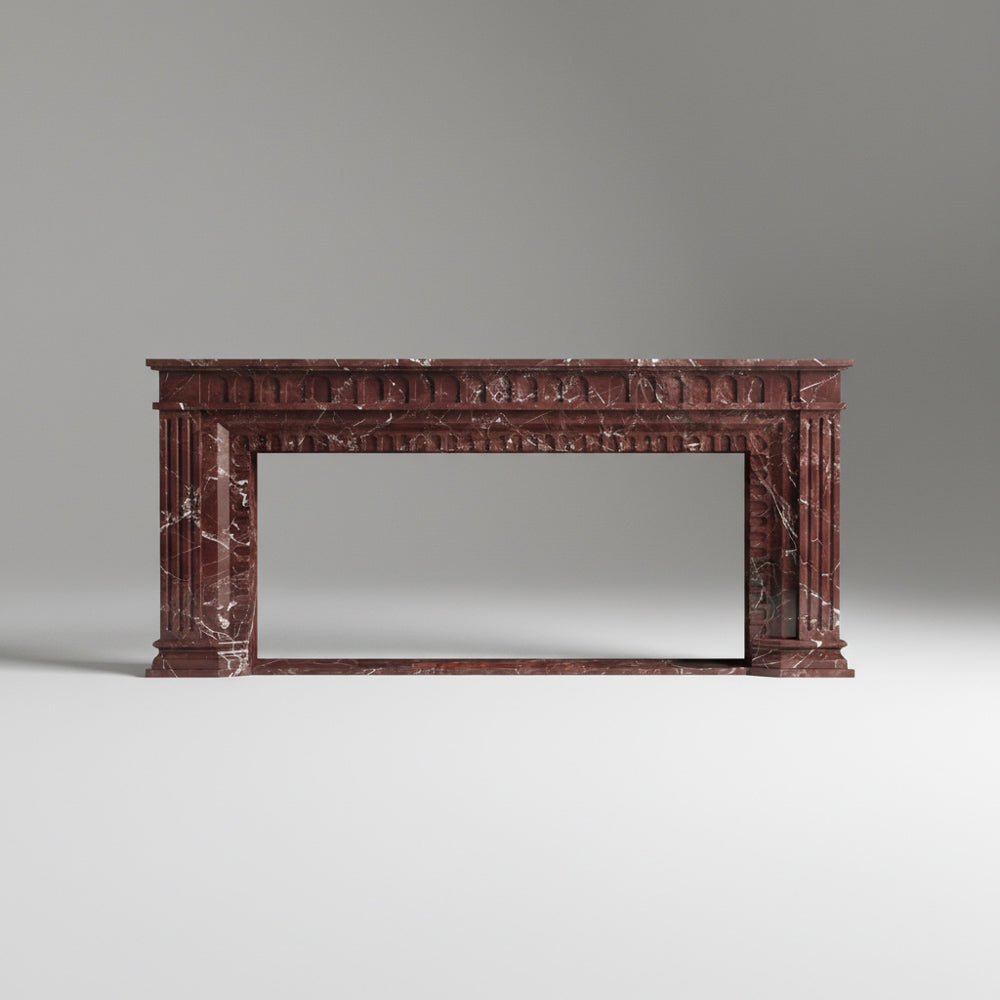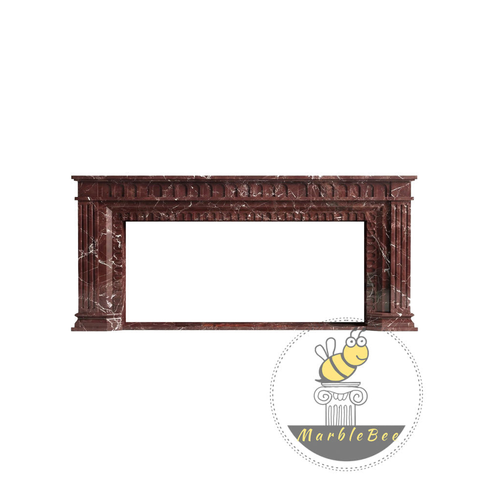 Marble fireplace surround for sale | Fluted Red Pilasters | Width: 63 Inch | Rosso Levanto