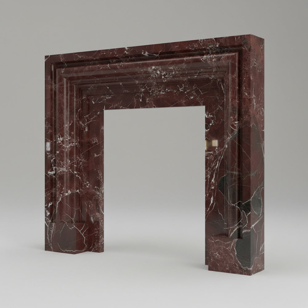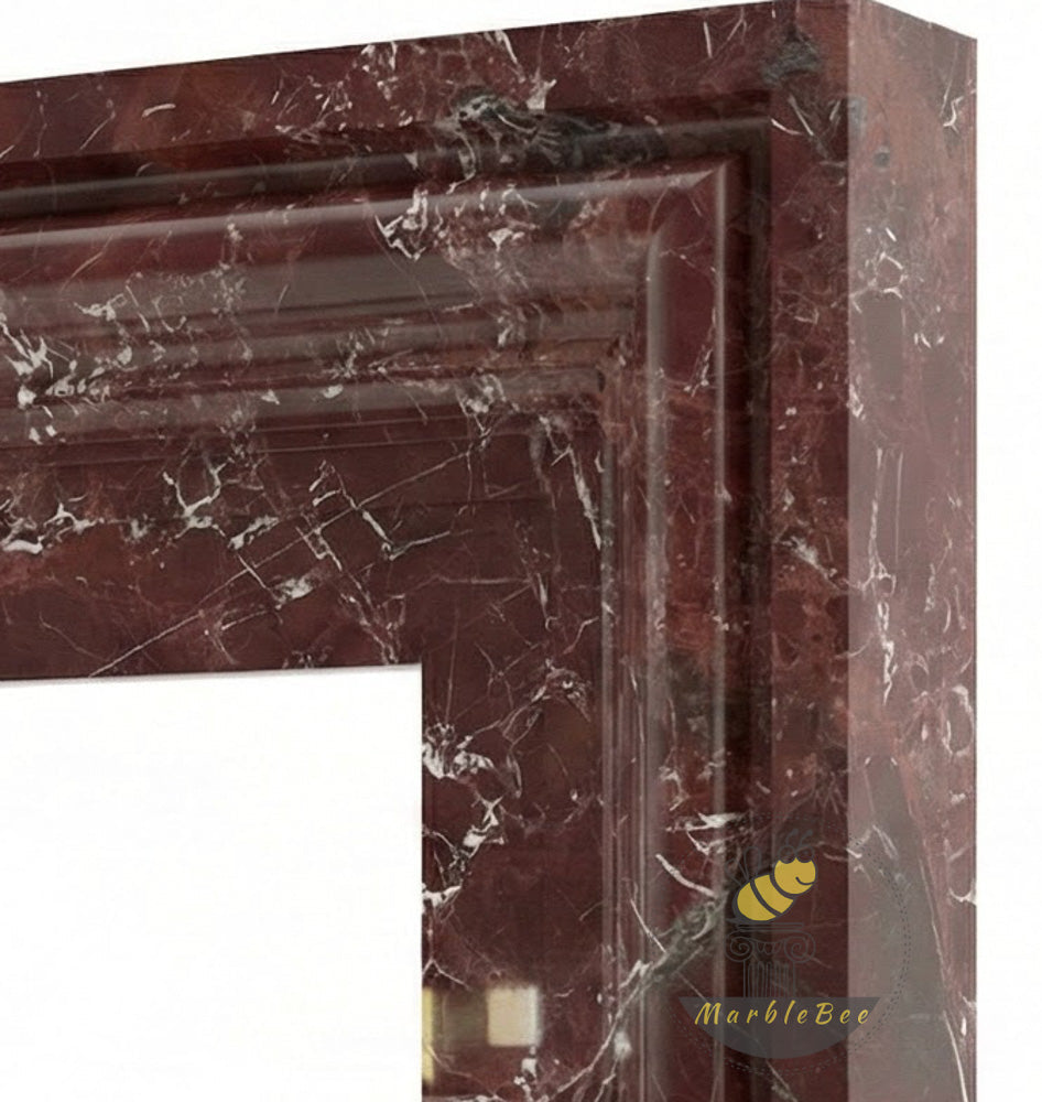 Marble fireplace surround | Stepped bolection molding | Width 59 Inch | Rosso Levanto