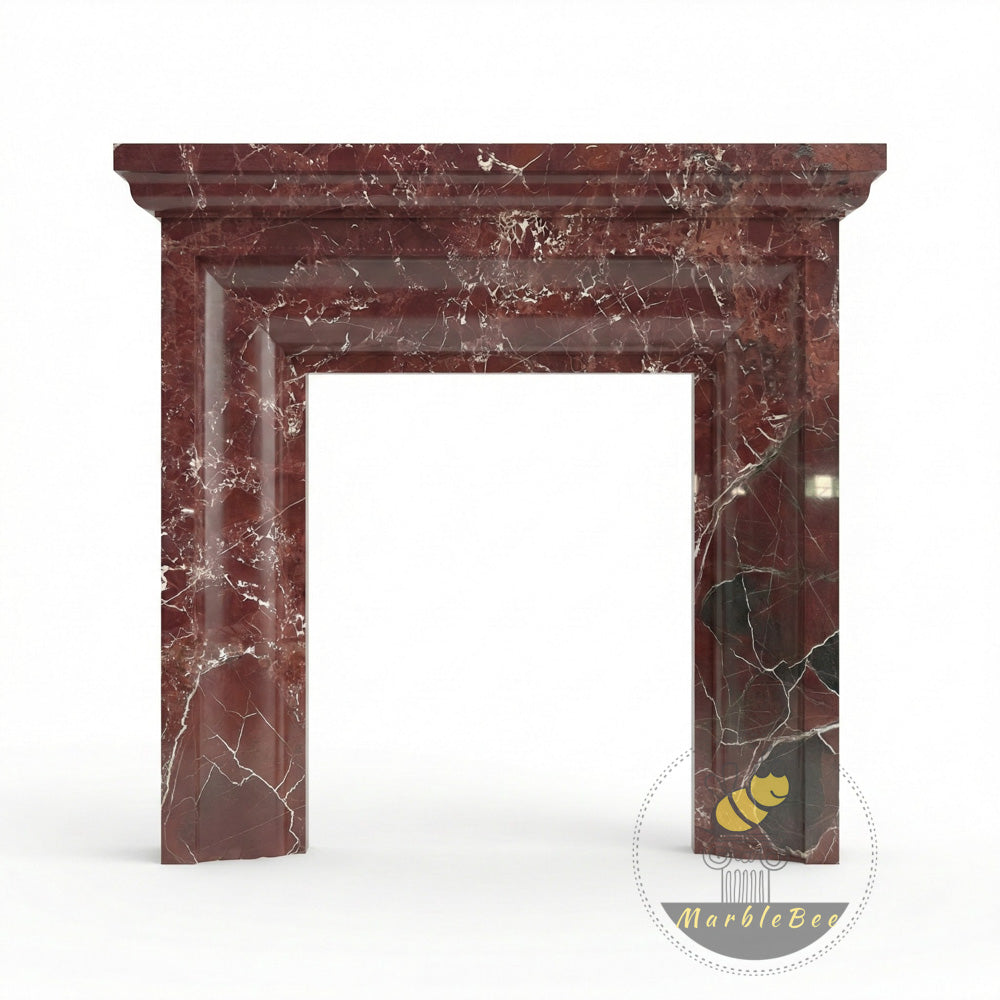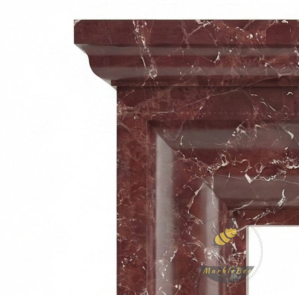 Marble fireplacue surround fluted | Rich Stepped Bolection Profile | Width: 59 Inch | Rosso Levanto