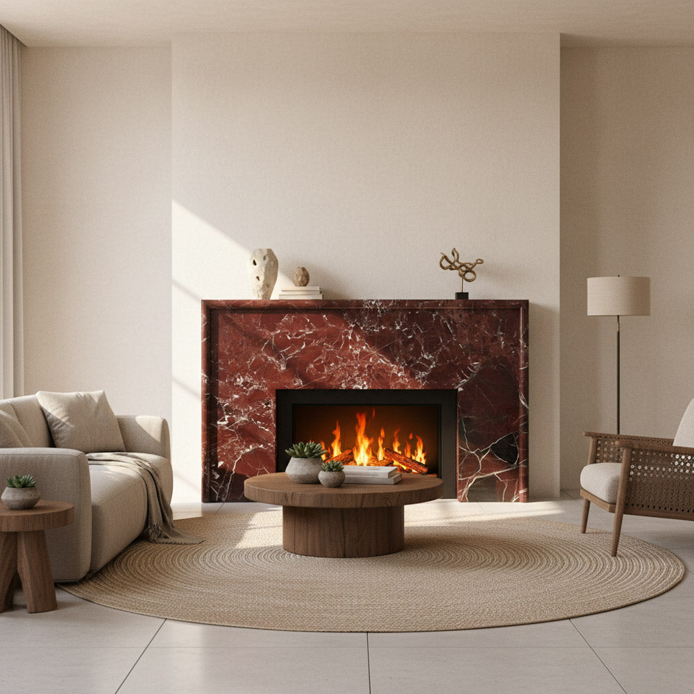 Marble hearth and back panel | Sleek Polished Red | 62 Inch Width | Rosso Levanto