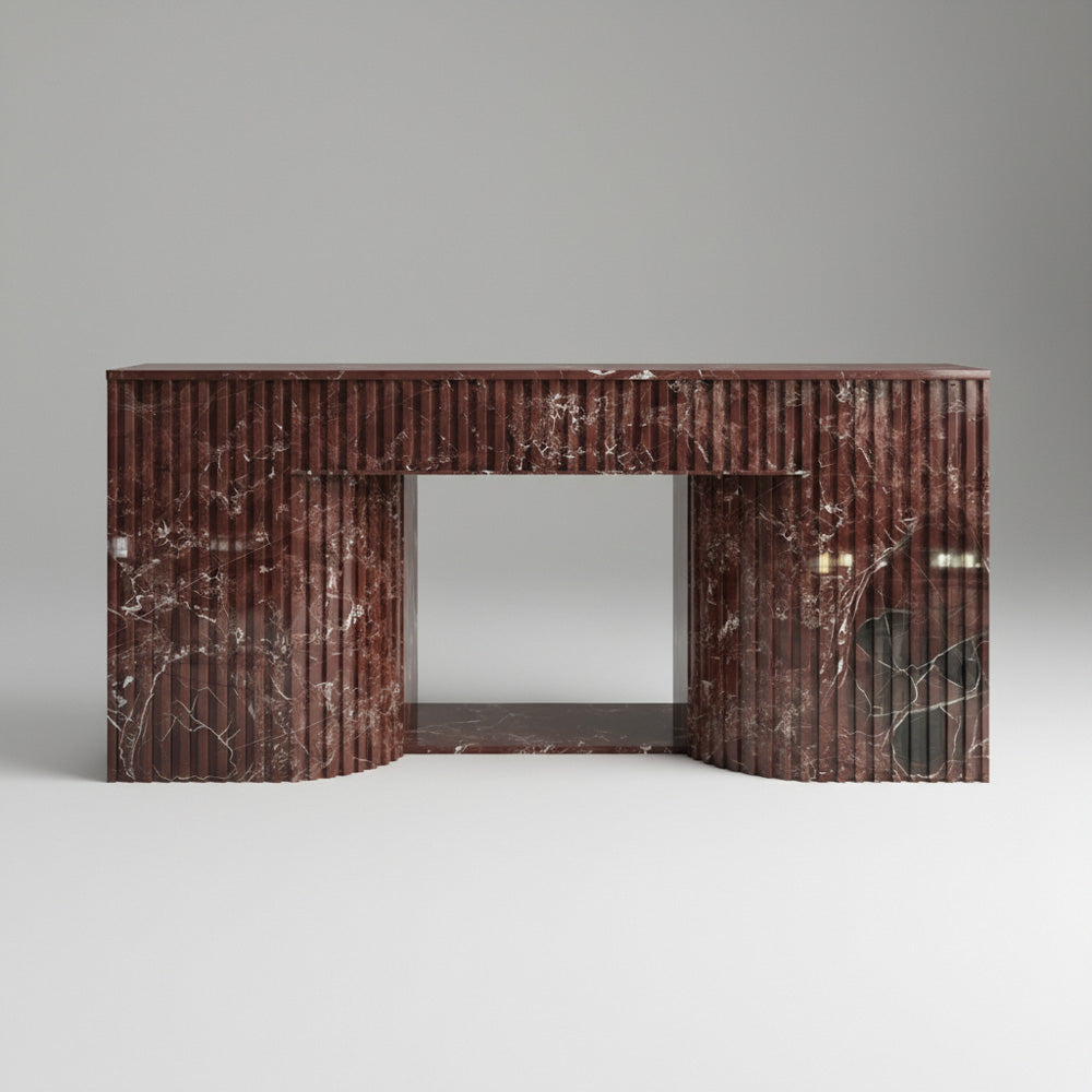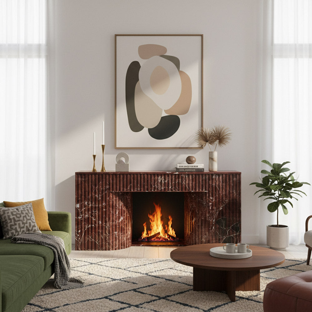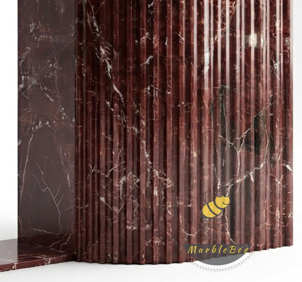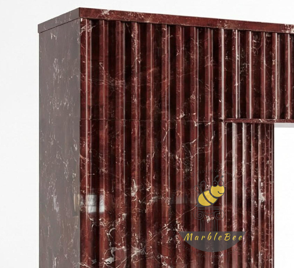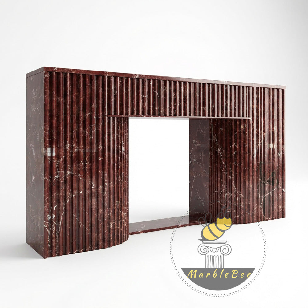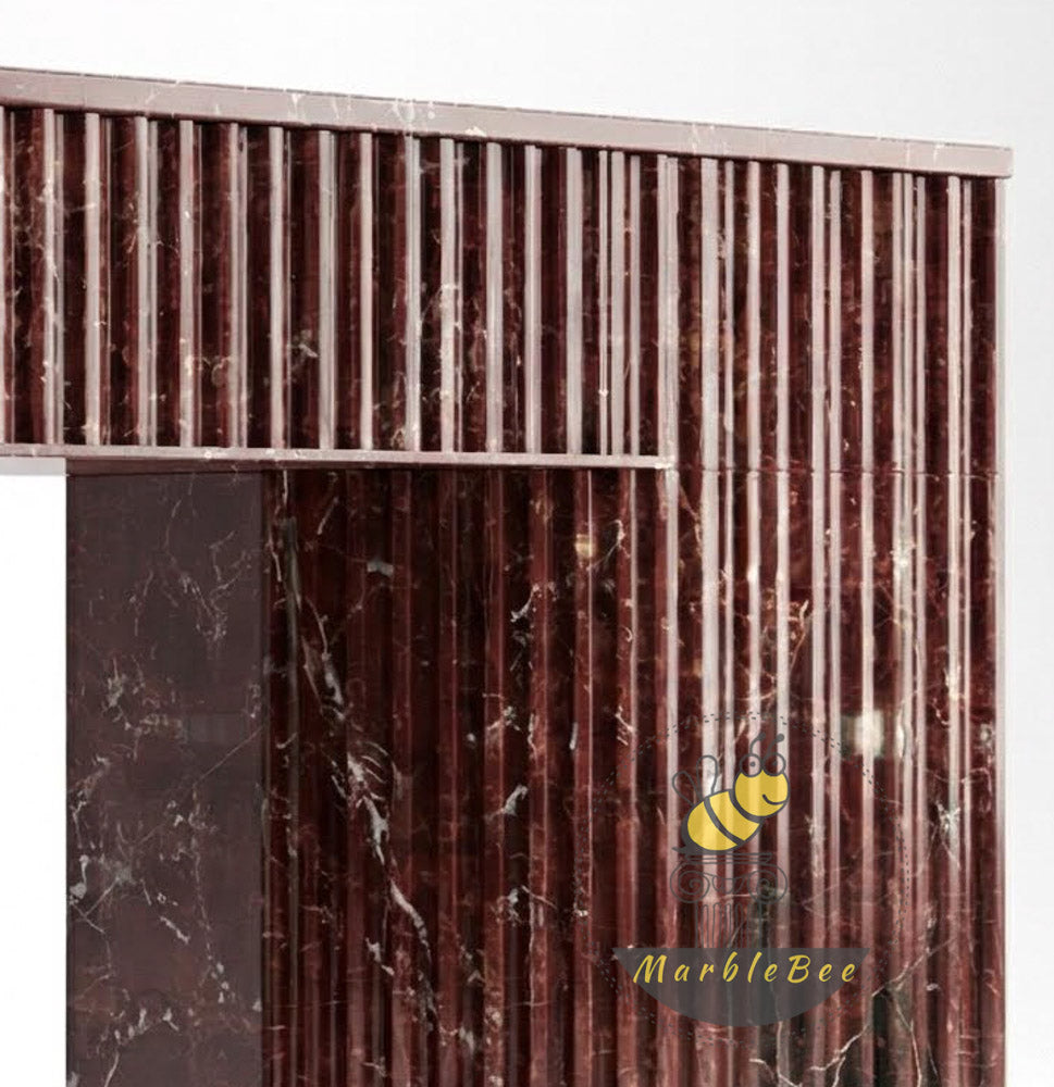 Marble hearths | Fluted modern surround | 62 Inch Width | Rosso Levanto