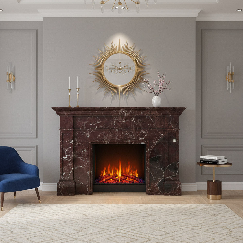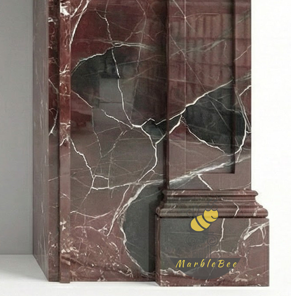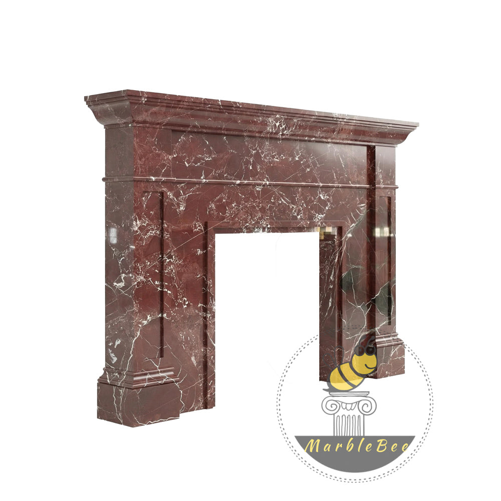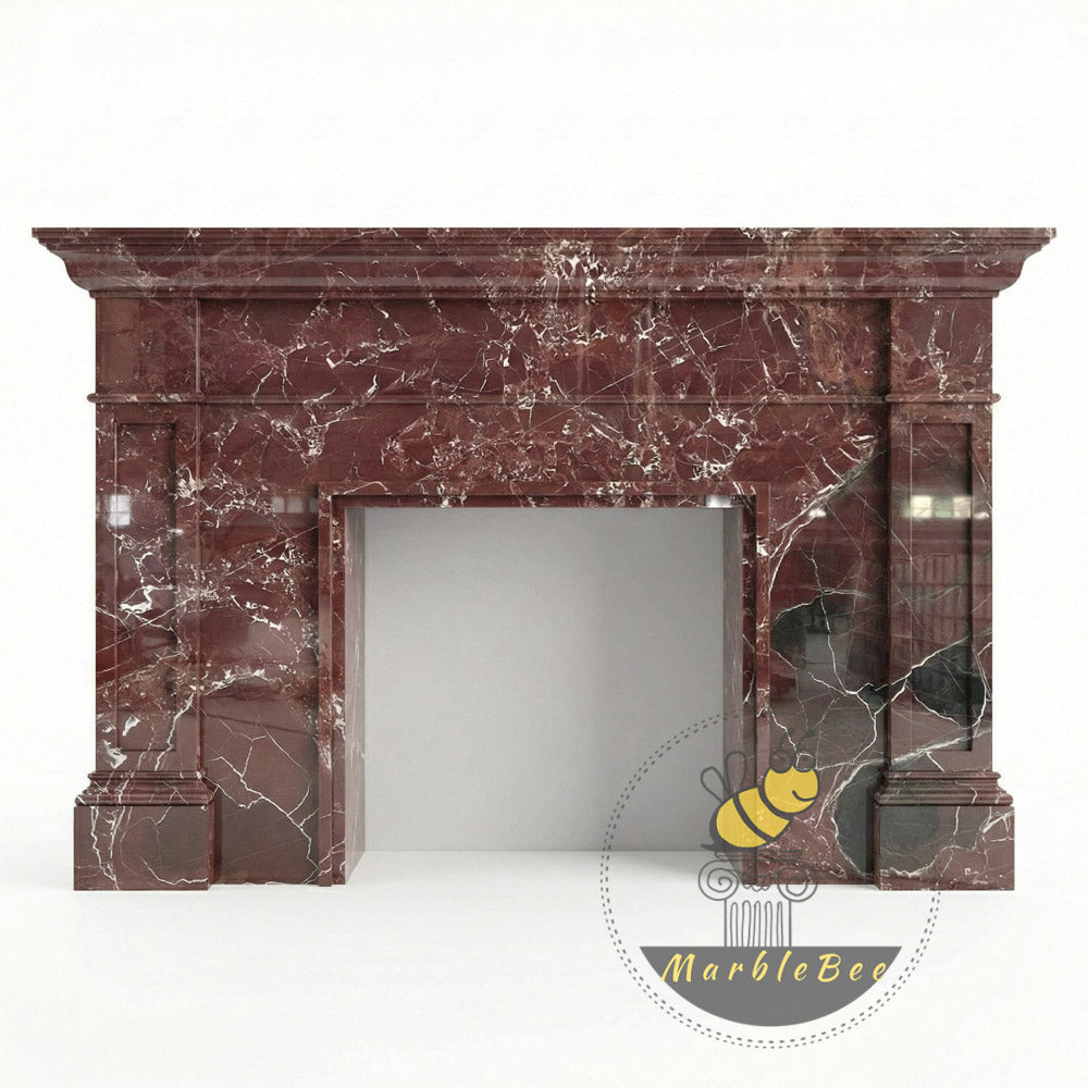 Marble mantel | Fluted pilaster surround | 59 Inch Width | Rosso Levanto