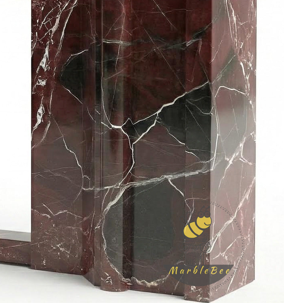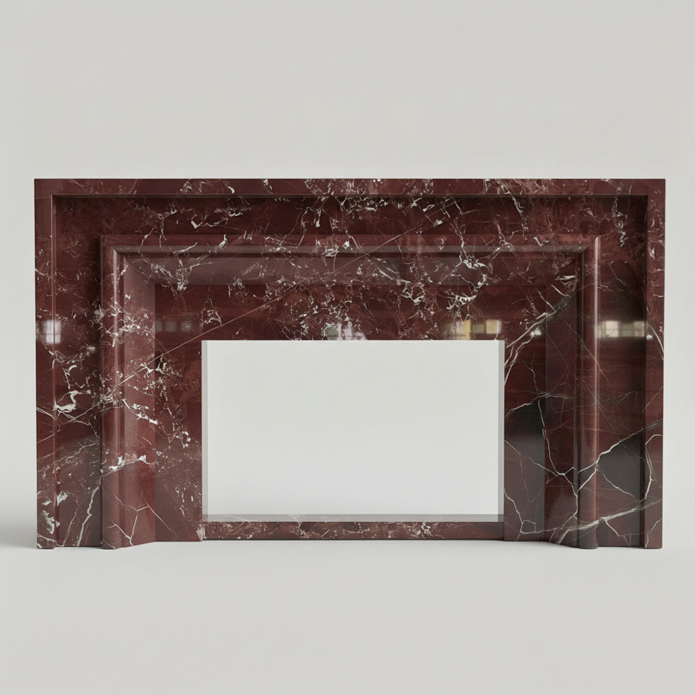 | Marble mantel surround | Geometric stepped design | Width: 61 Inch | Rosso Levanto