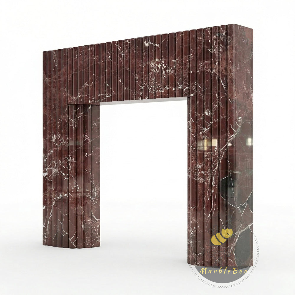 Marble mantelpiece | Fluted Modern Design | 59 Inch Width | Rosso Levanto
