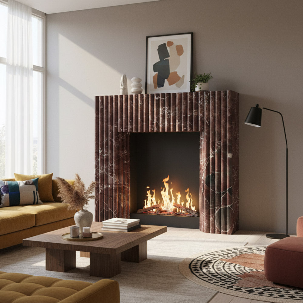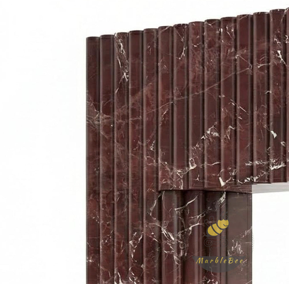 Marble mantelpiece | Fluted Modern Design | 59 Inch Width | Rosso Levanto
