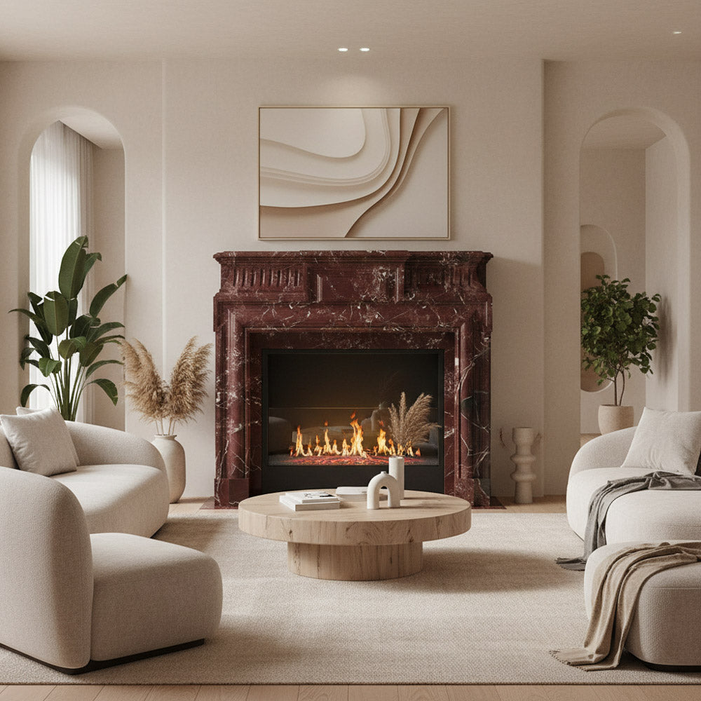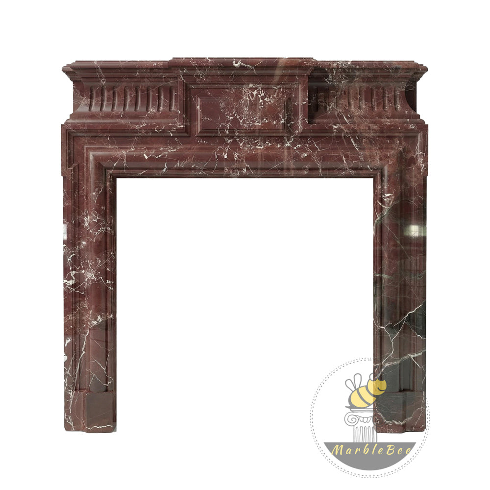 Marble mantels for sale | Fluted geometric frieze | Height 51" | Rosso Levanto