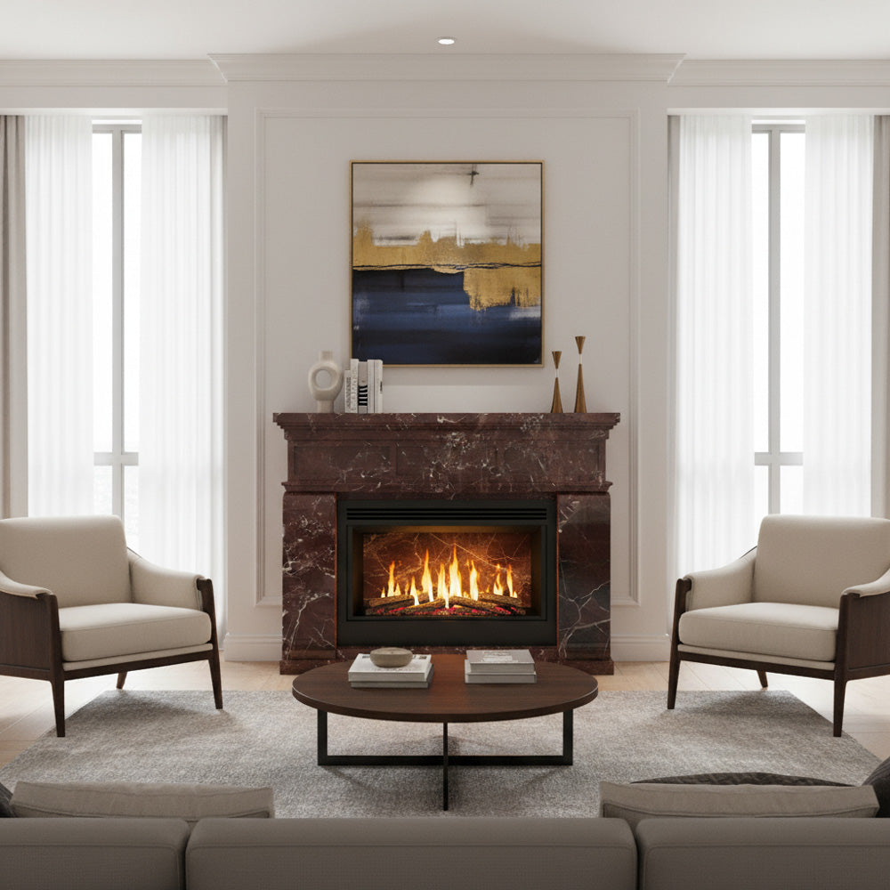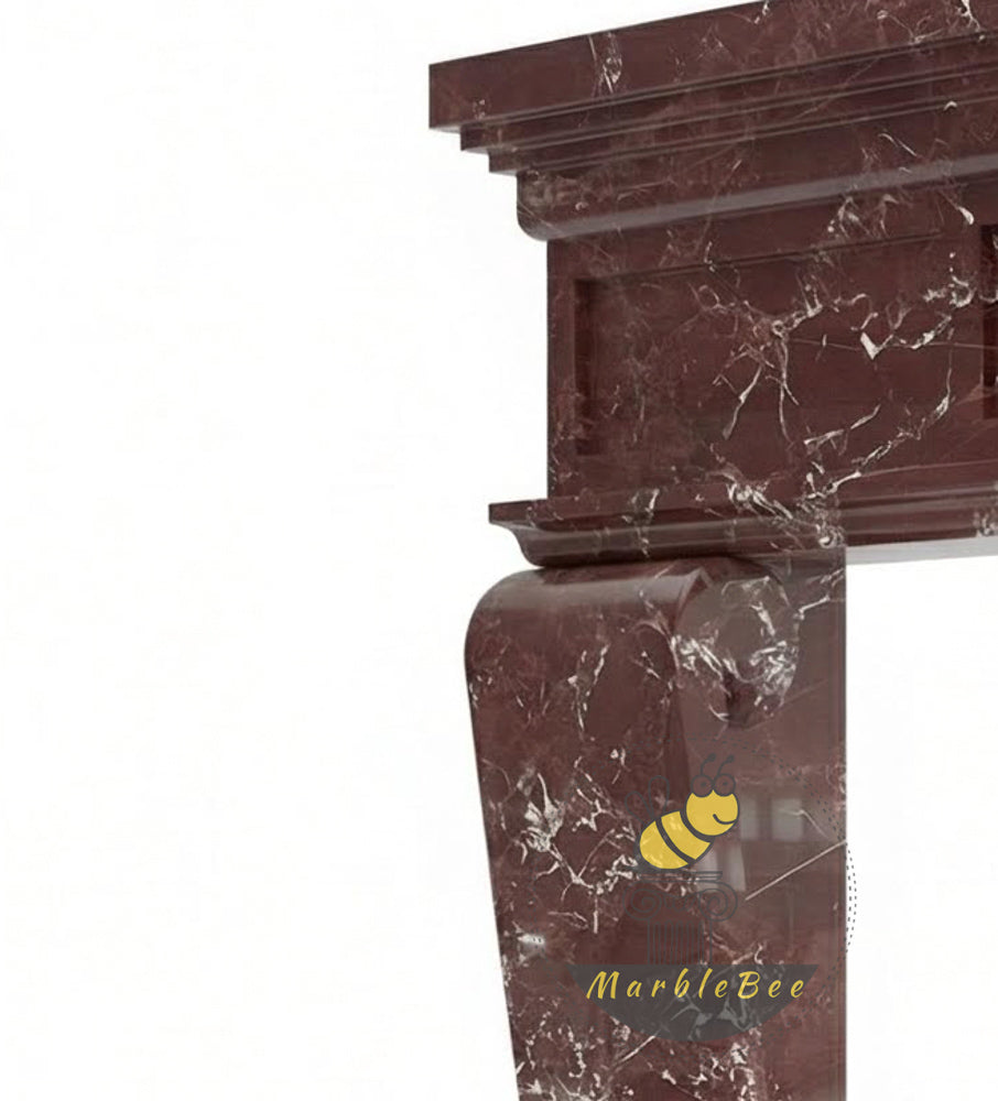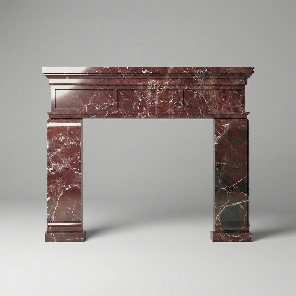 Marble stone fireplace | Red Panelled Design | Width: 59 Inch | Rosso Levanto