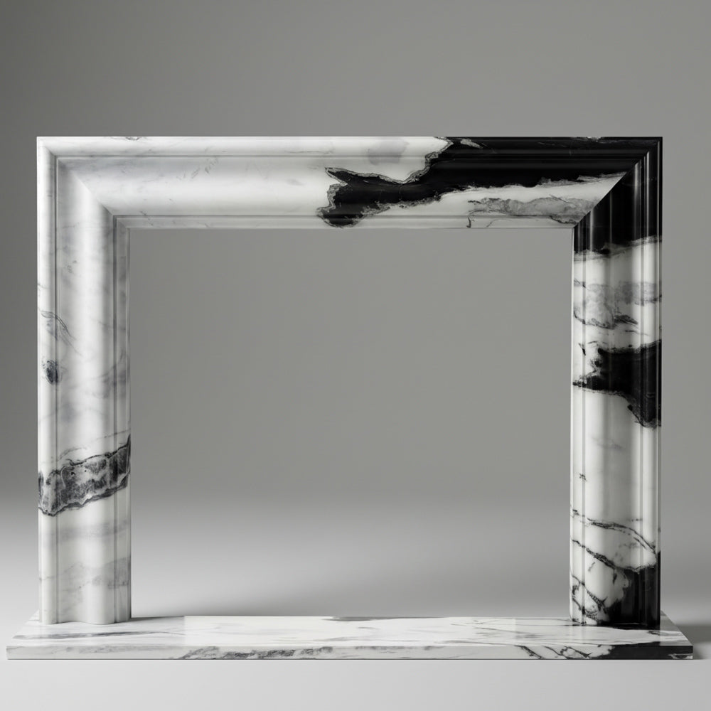 white marble surround fireplace | bold black veins | 59 Inch Width | Panda White