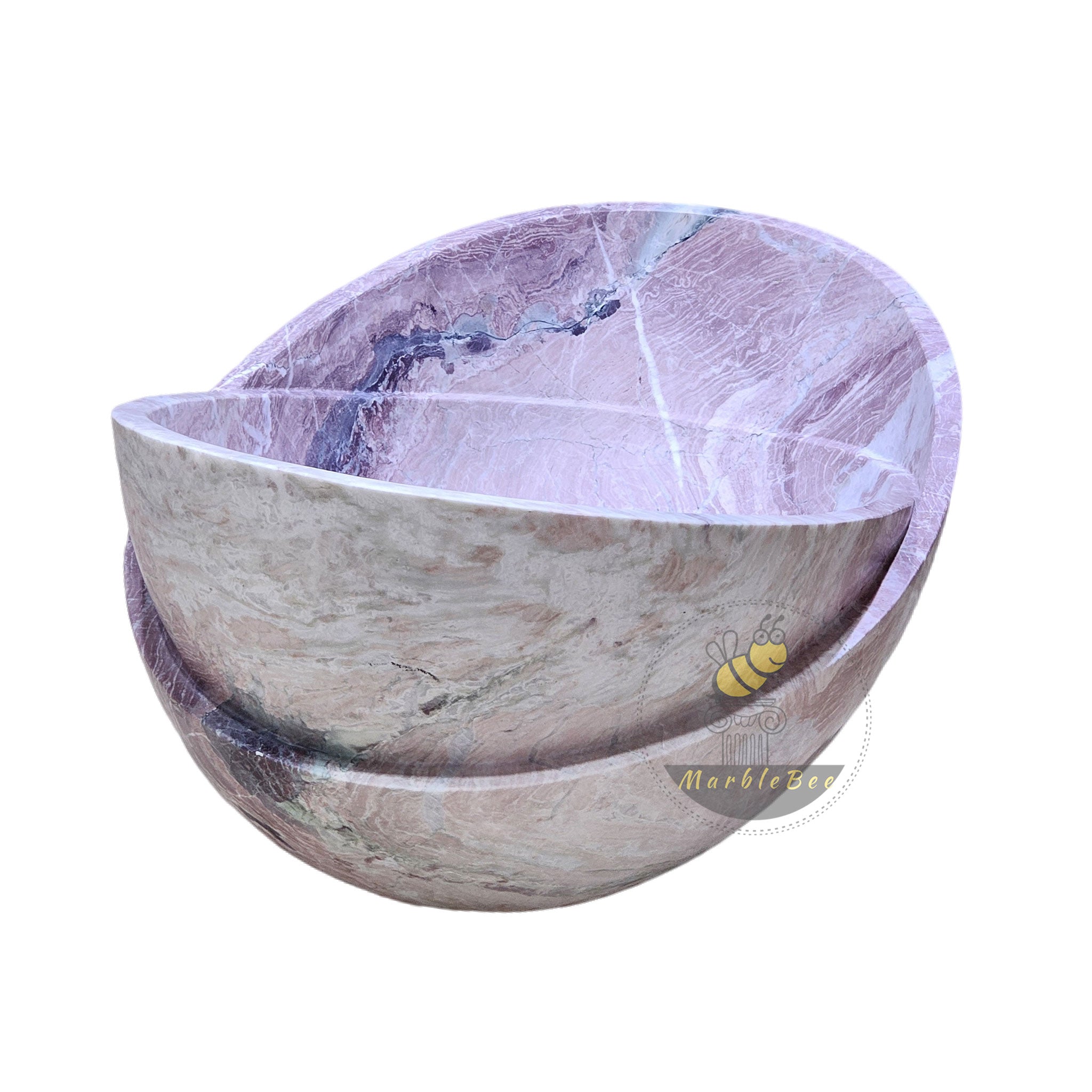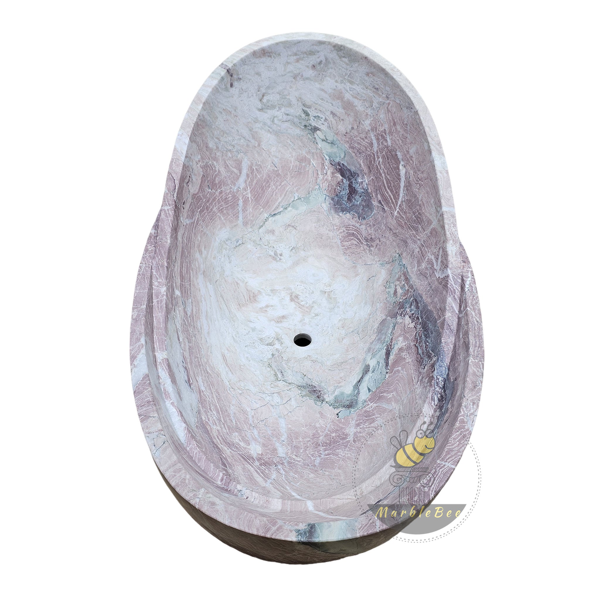 Pink Marble Bathtub | Pink Violet Swirl Oval Soaking 64.96" Long